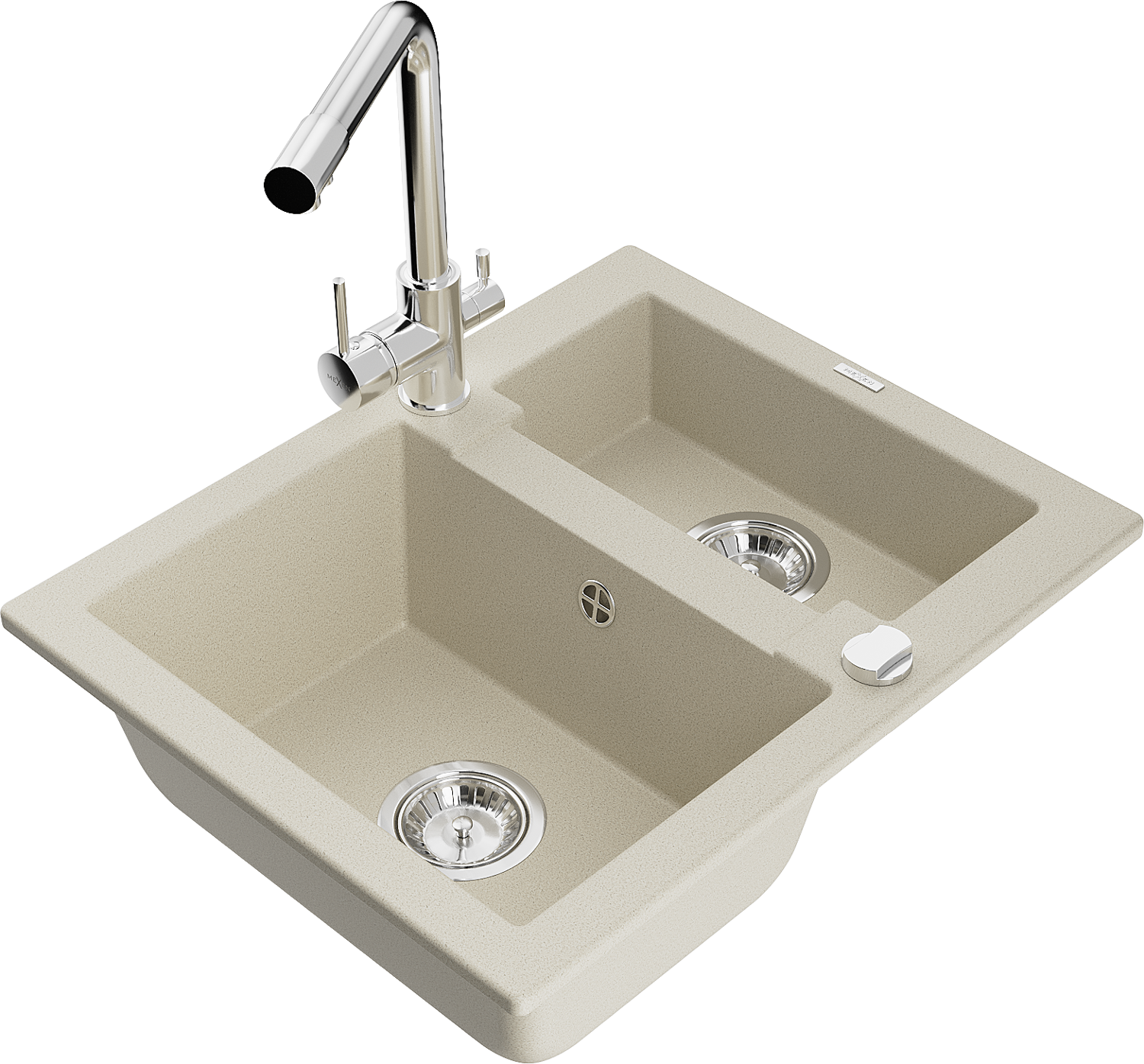 Mexen Carlos granitový drez 1,5-komorový s kuchynskou batériou Duero, béžový - 6518-69-671600-00