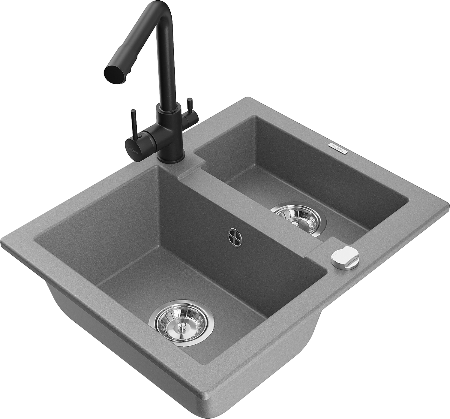 Mexen Carlos žulový drez 1,5-komorový s kuchynskou batériou Duero, sivý - 6518-71-671600-70