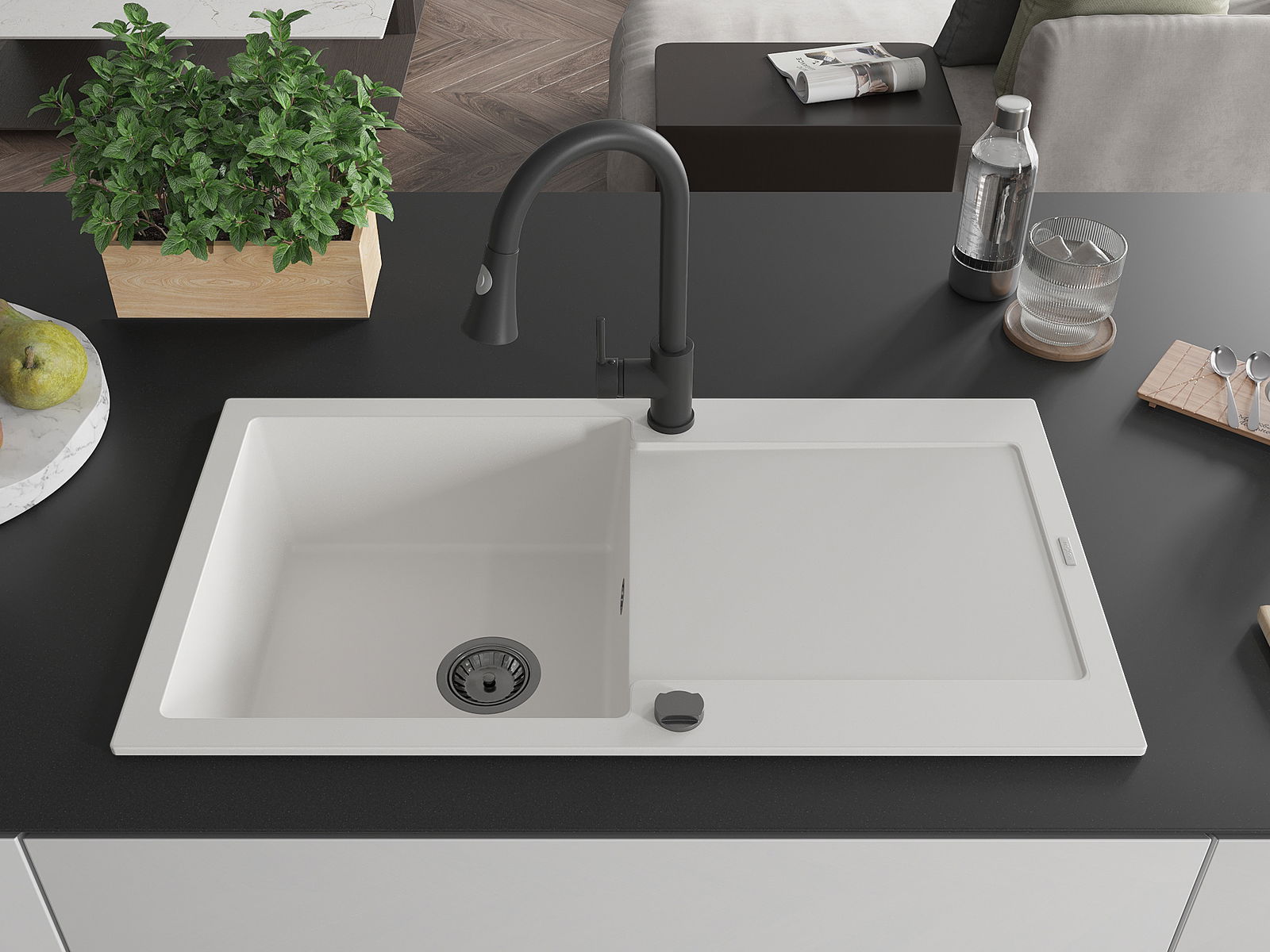Povrch umývadla je odolný voči škvrnám a sfarbeniu, vďaka čomu sa ľahko čistí a zachováva si svoju farbu po dlhú dobu. Estetický a prakticky dopĺňajúci každú kuchyňu.