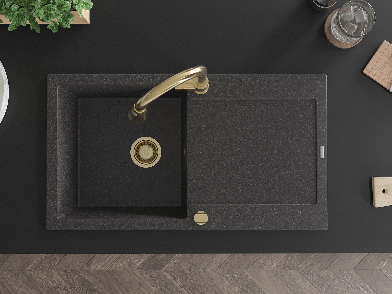 Povrch umývadla je odolný voči škvrnám a sfarbeniu, vďaka čomu sa ľahko čistí a zachováva si svoju farbu po dlhú dobu. Estetický a prakticky dopĺňajúci každú kuchyňu.