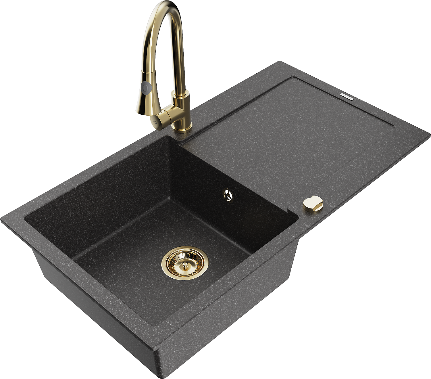 Mexen Leo granitový drez 1-komorový s odkvapkávacou plochou a kuchynskou batériou Elia, čierny s bodkami - 6501-76-670101-50
