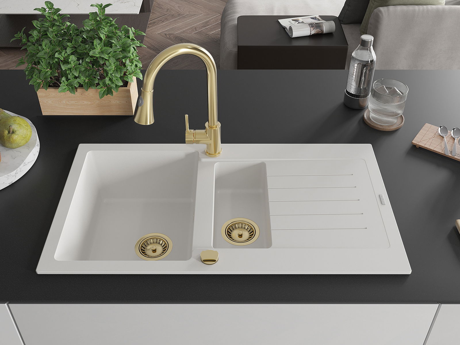 Povrch umývadla je odolný voči škvrnám a sfarbeniu, vďaka čomu sa ľahko čistí a zachováva si svoju farbu po dlhú dobu. Estetický a prakticky dopĺňajúci každú kuchyňu.