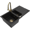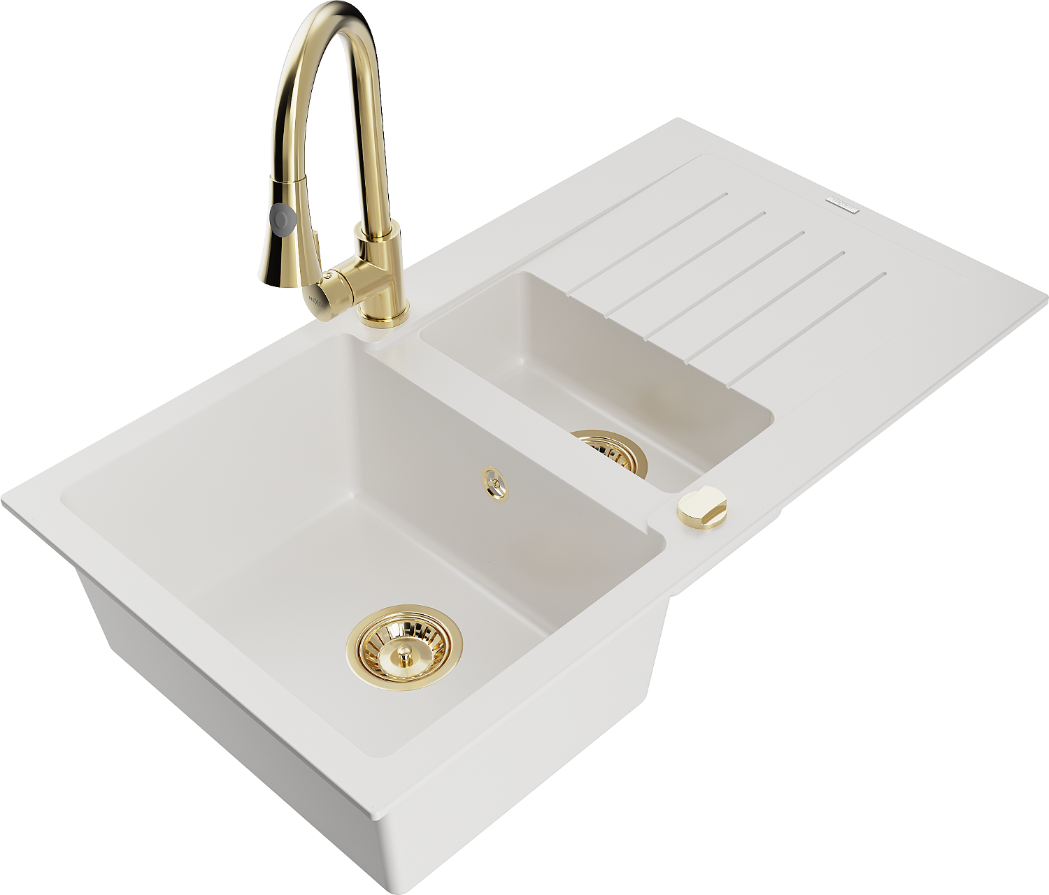 Mexen Matias granitový drez 1,5-komorový s odkvapkávačom a kuchynskou batériou Elia, biely - 6502-20-670101-50