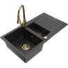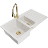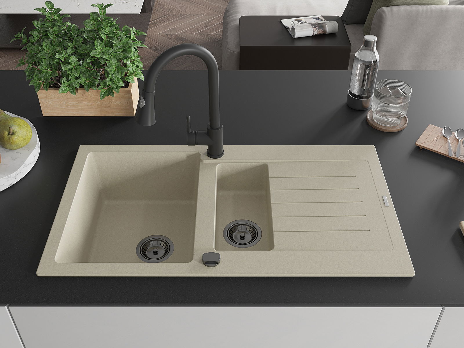 Mexen Matias granitový drez 1,5-komorový s odkvapkávačom a kuchynskou batériou Elia, béžový - 6502-69-670101-70