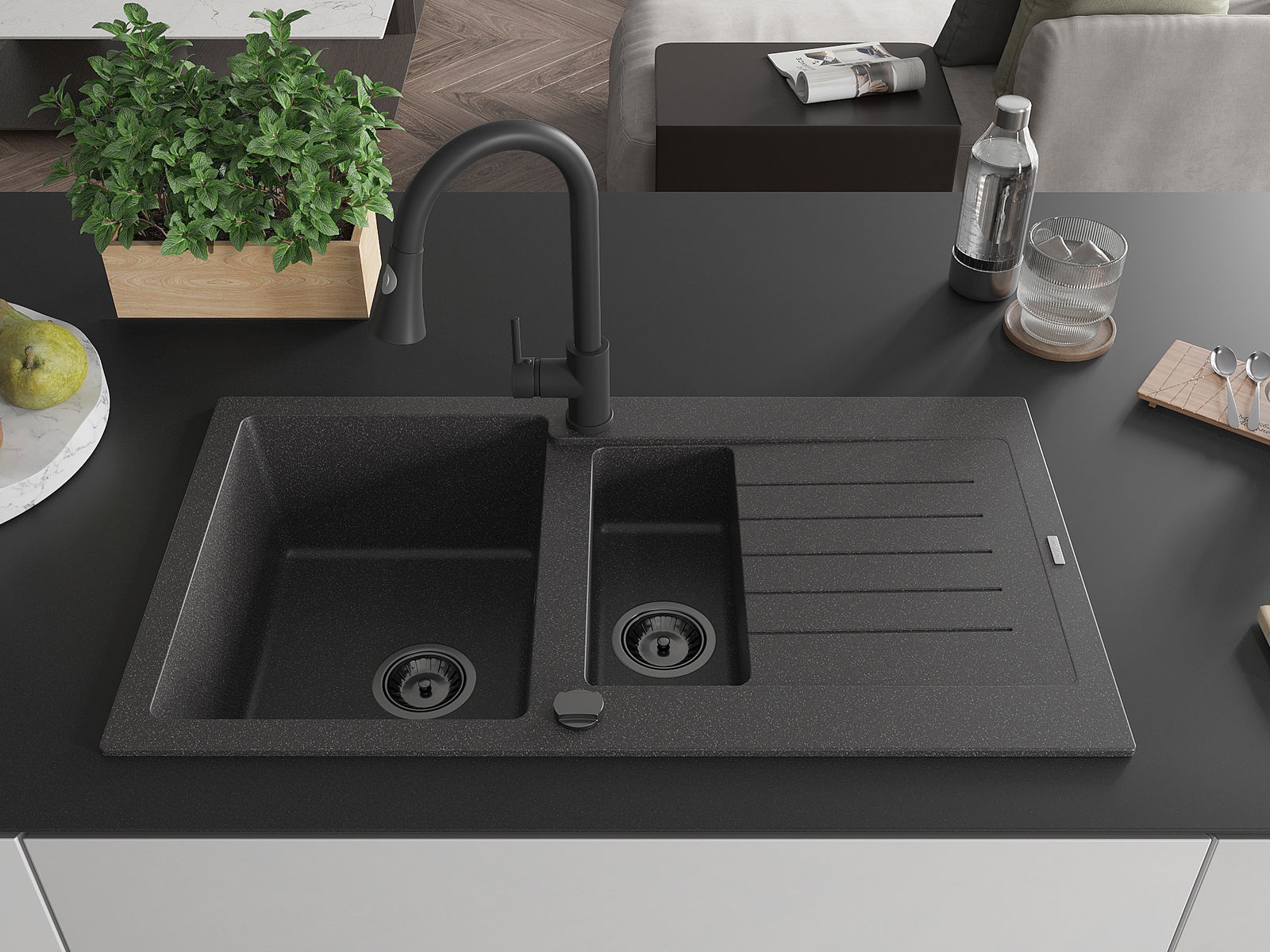 Povrch umývadla je odolný voči škvrnám a sfarbeniu, vďaka čomu sa ľahko čistí a zachováva si svoju farbu po dlhú dobu. Estetický a prakticky dopĺňajúci každú kuchyňu.