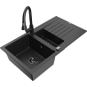 Mexen Matias granitový kuchynský drez 1,5-komorový s odkvapkávačom a kuchynskou batériou Elia, čierna bodkovaná - 6502-76-67010?