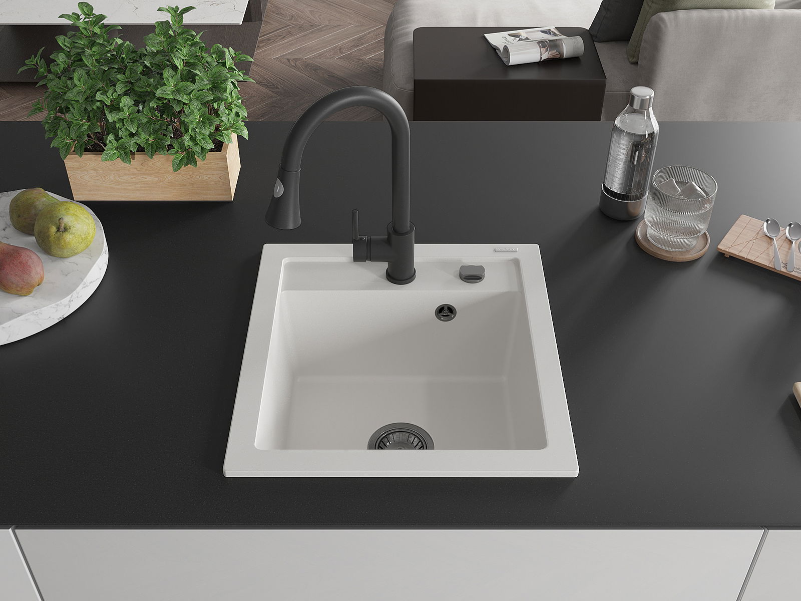 Povrch umývadla je odolný voči škvrnám a sfarbeniu, vďaka čomu sa ľahko čistí a zachováva si svoju farbu po dlhú dobu. Estetický a prakticky dopĺňajúci každú kuchyňu.