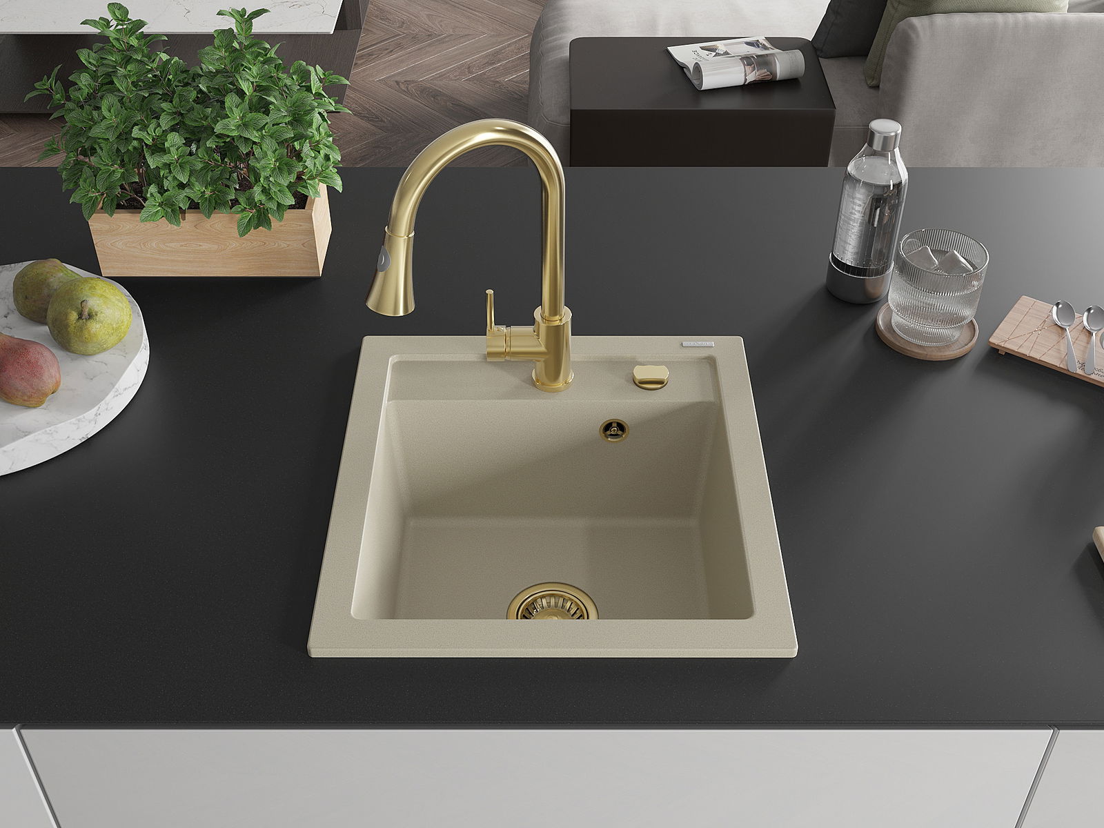 Povrch umývadla je odolný voči škvrnám a sfarbeniu, vďaka čomu sa ľahko čistí a zachováva si svoju farbu po dlhú dobu. Estetický a prakticky dopĺňajúci každú kuchyňu.