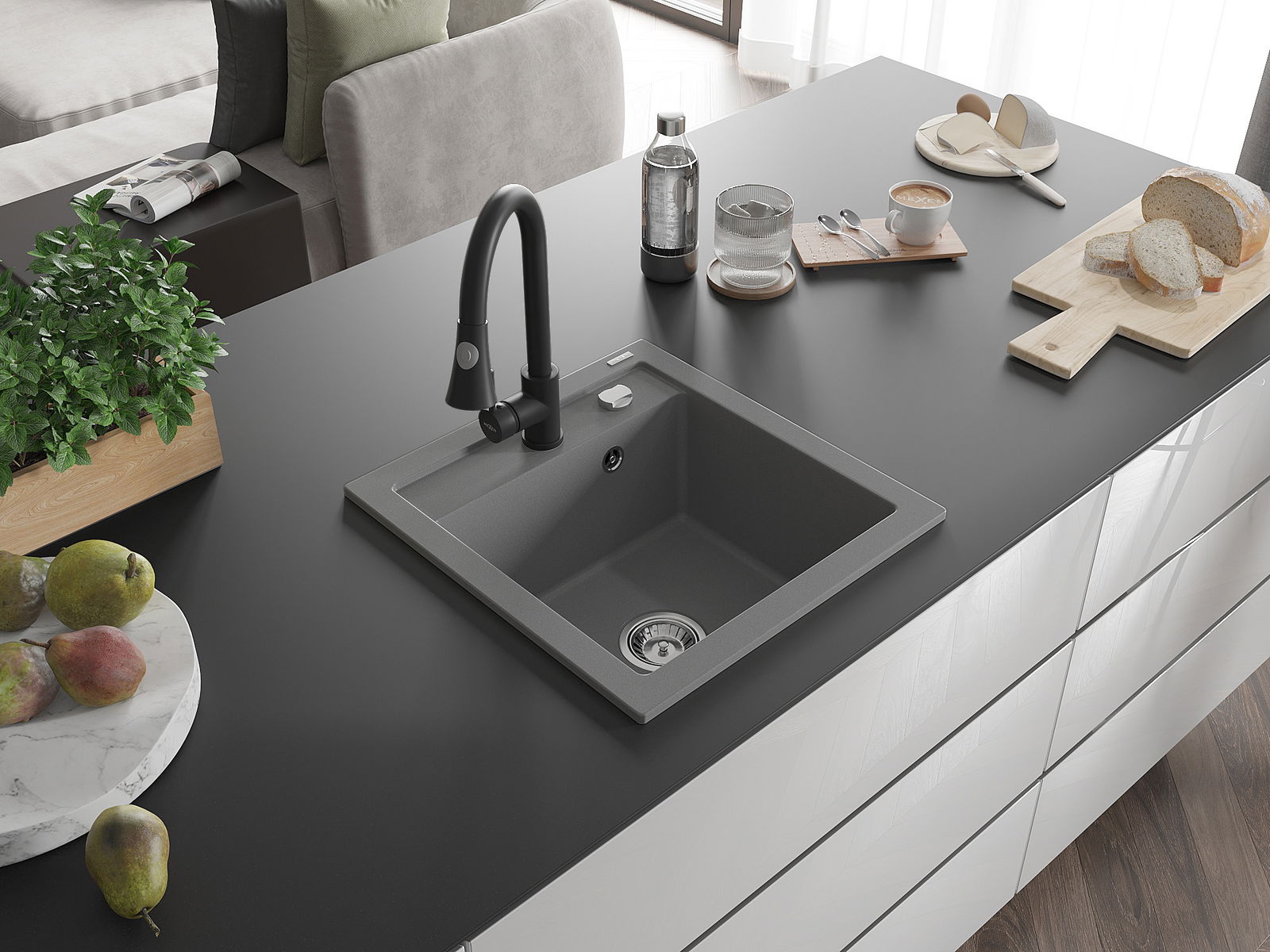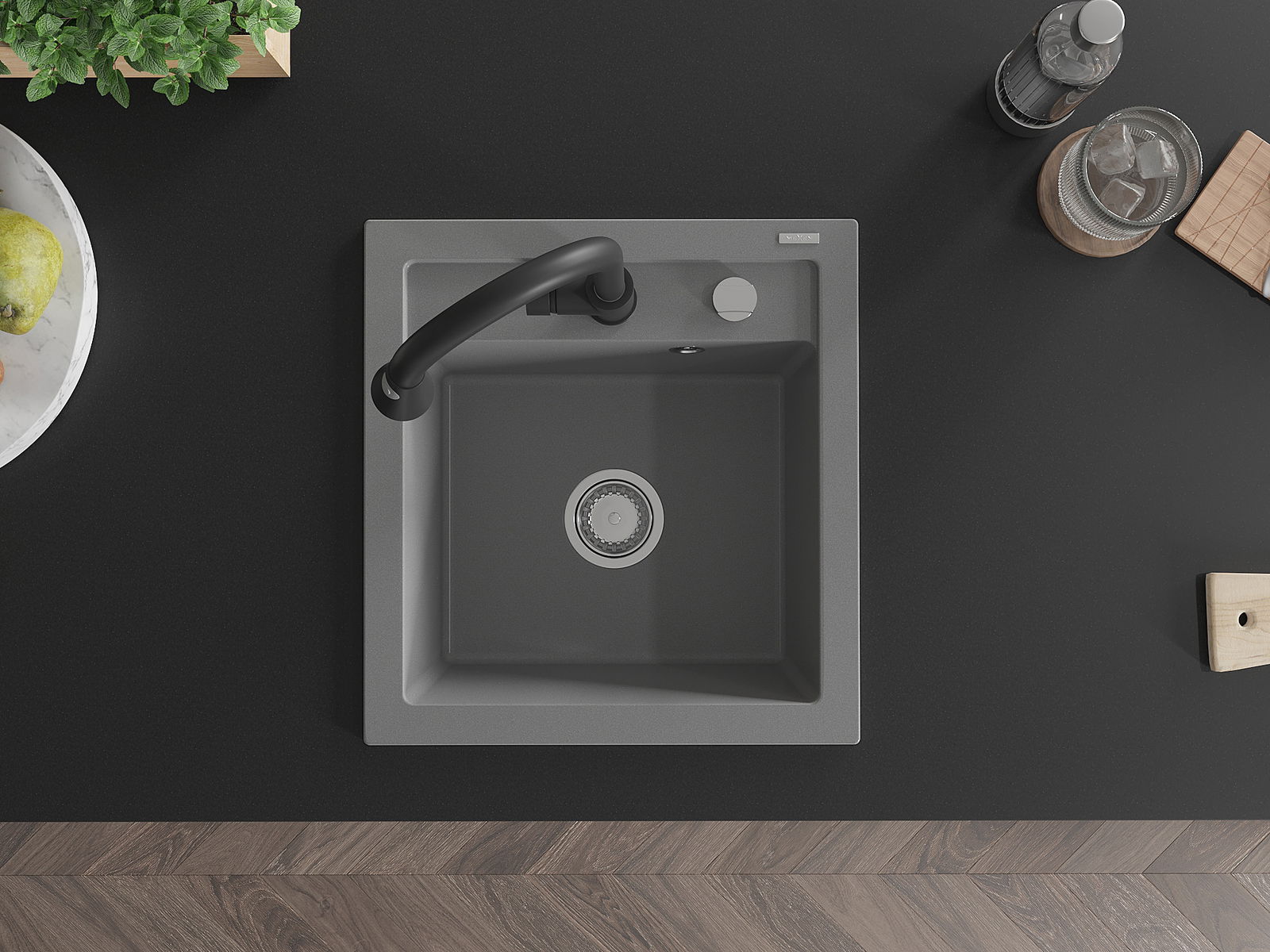 Mexen Vito granitový drez 1-komorový s kuchynskou batériou Elia, sivý - 6503-71-670101-70