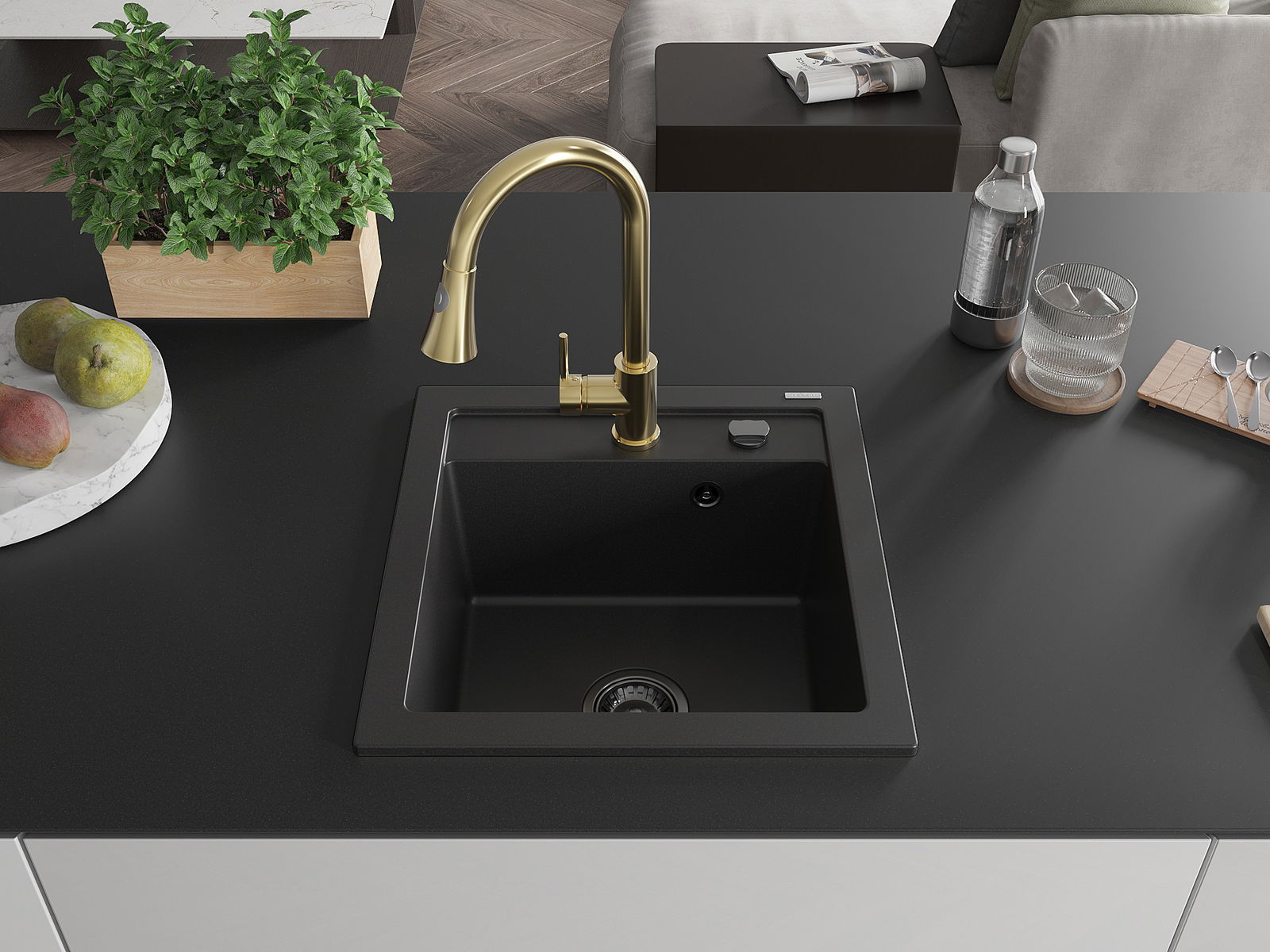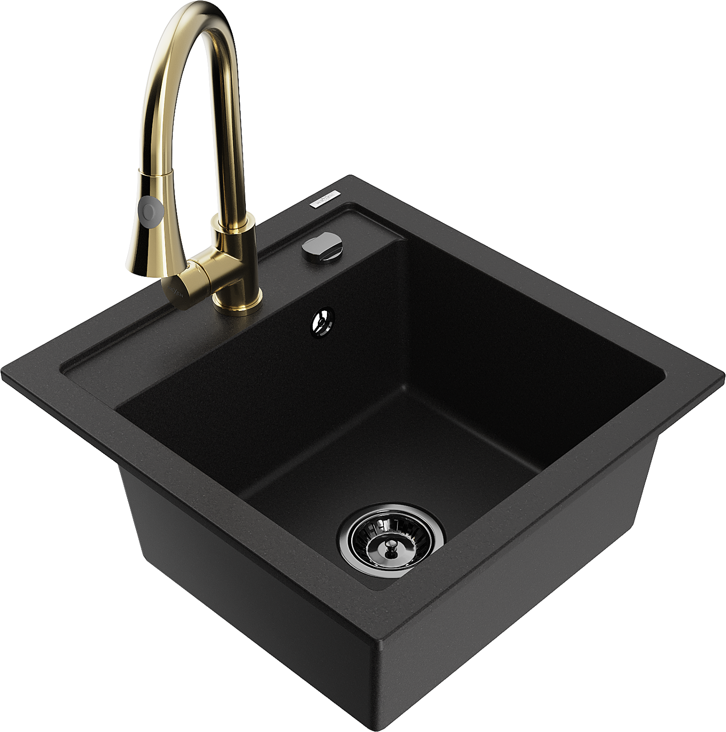 Mexen Vito žulový kuchynský drez 1-komorový s kuchynskou batériou Elia, čierny - 6503-77-670101-50-B