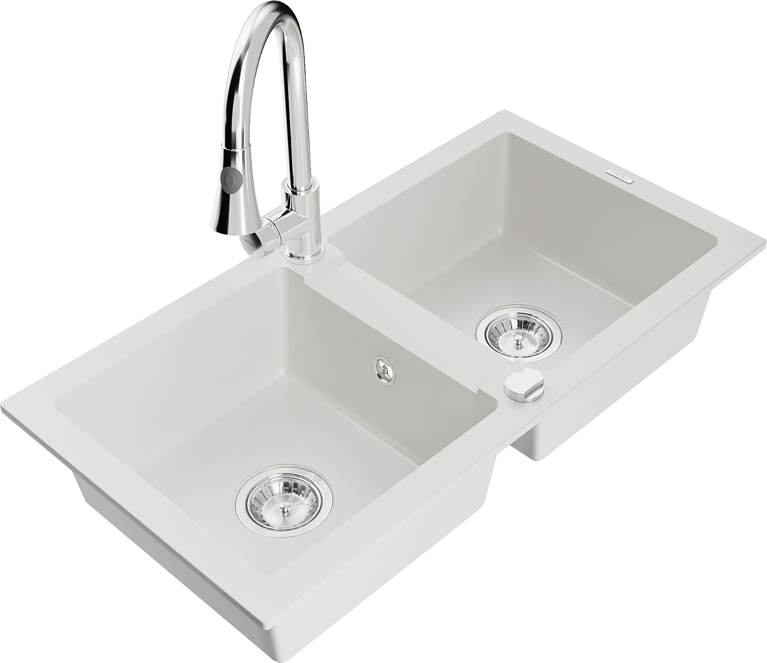 Mexen Mario žulový drez 2-komorový s kuchynskou batériou Elia, biely - 6504-20-670101-00