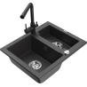 Mexen Carlos granitový drez 1,5-komorový s kuchynskou batériou Duero, čierny/strieborný metalik - 6518-73-671600-70