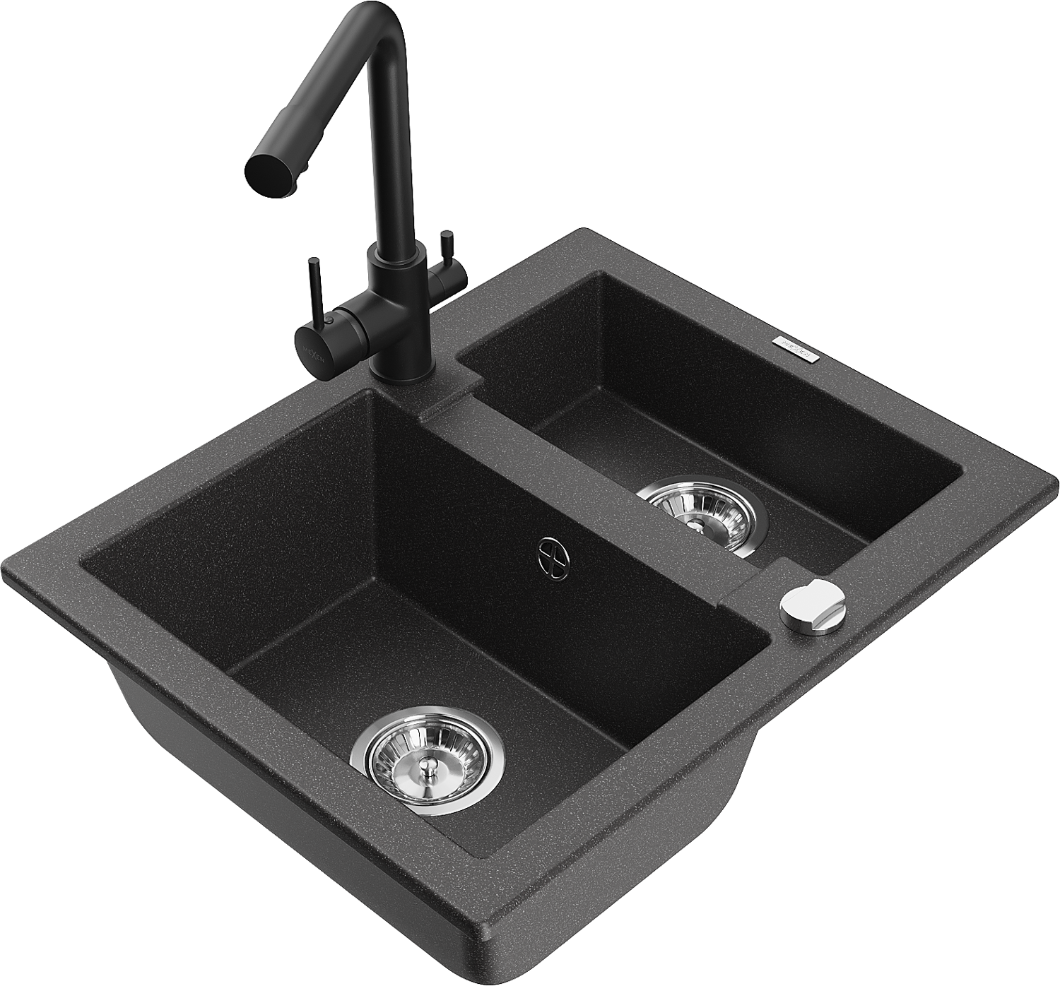Mexen Carlos žulový drez 1,5-komorový s kuchynskou batériou Duero, čierny s bodkami - 6518-76-671600-70