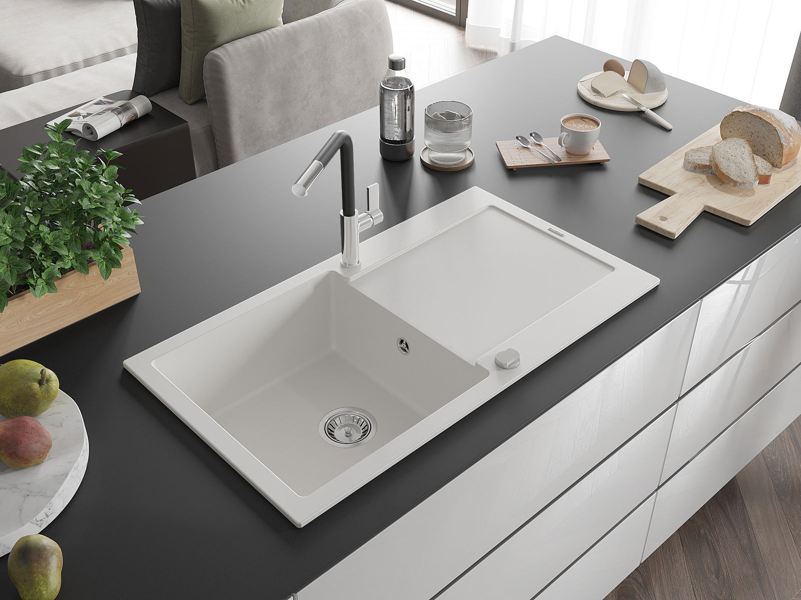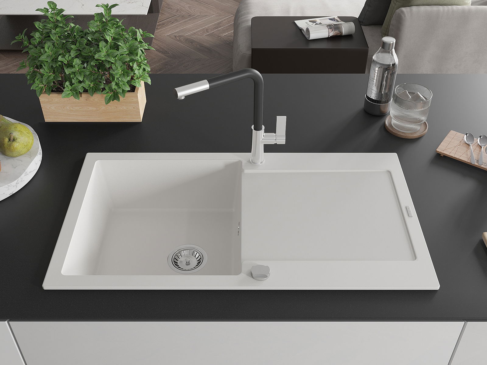 Povrch umývadla je odolný voči škvrnám a sfarbeniu, vďaka čomu sa ľahko čistí a zachováva si svoju farbu po dlhú dobu. Estetický a prakticky dopĺňajúci každú kuchyňu.