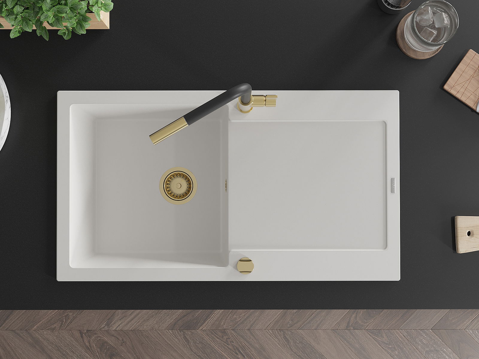 Povrch umývadla je odolný voči škvrnám a sfarbeniu, vďaka čomu sa ľahko čistí a zachováva si svoju farbu po dlhú dobu. Estetický a prakticky dopĺňajúci každú kuchyňu.