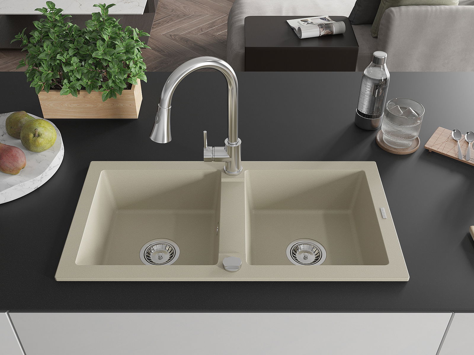 Povrch umývadla je odolný voči škvrnám a sfarbeniu, vďaka čomu sa ľahko čistí a zachováva si svoju farbu po dlhú dobu. Estetický a prakticky dopĺňajúci každú kuchyňu.