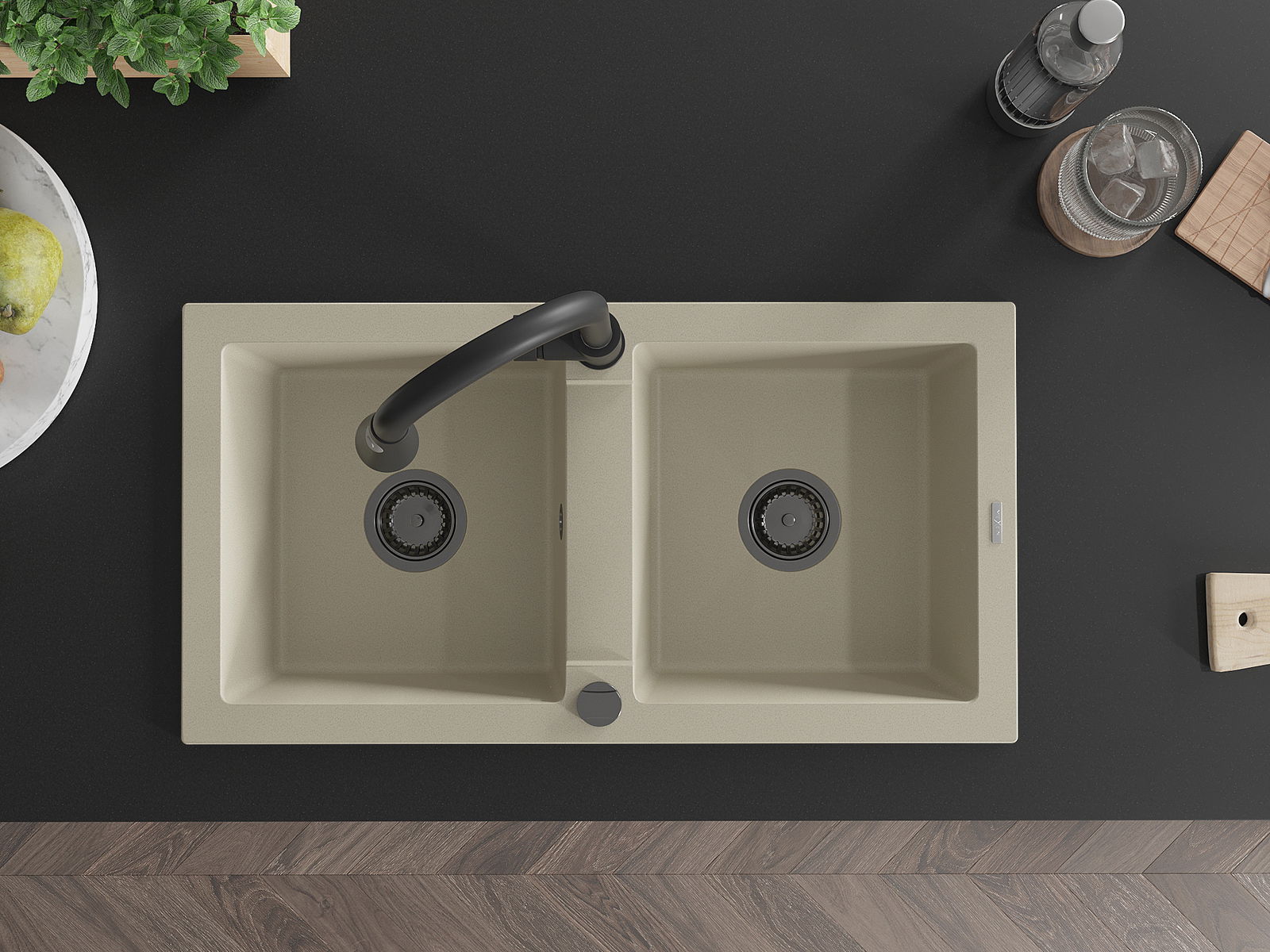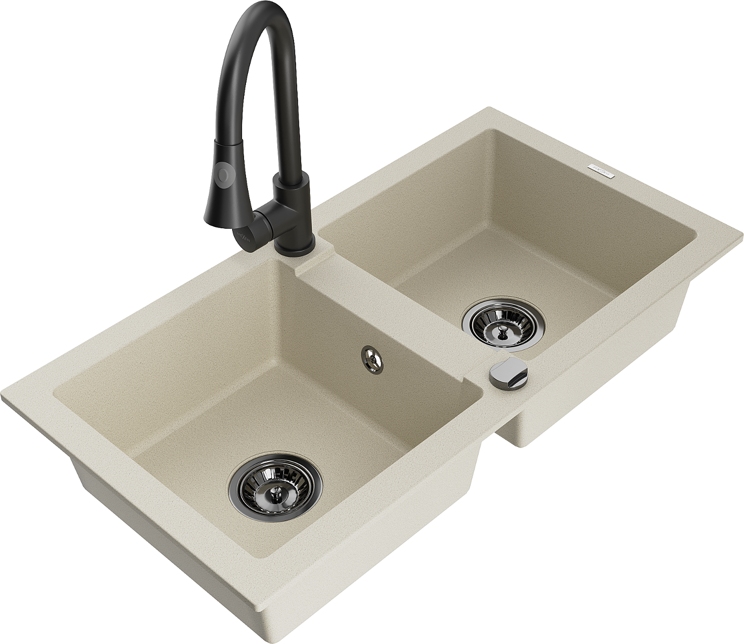 Mexen Mario dvojkomorový žulový drez s kuchynskou batériou Elia, béžový - 6504-69-670101-70