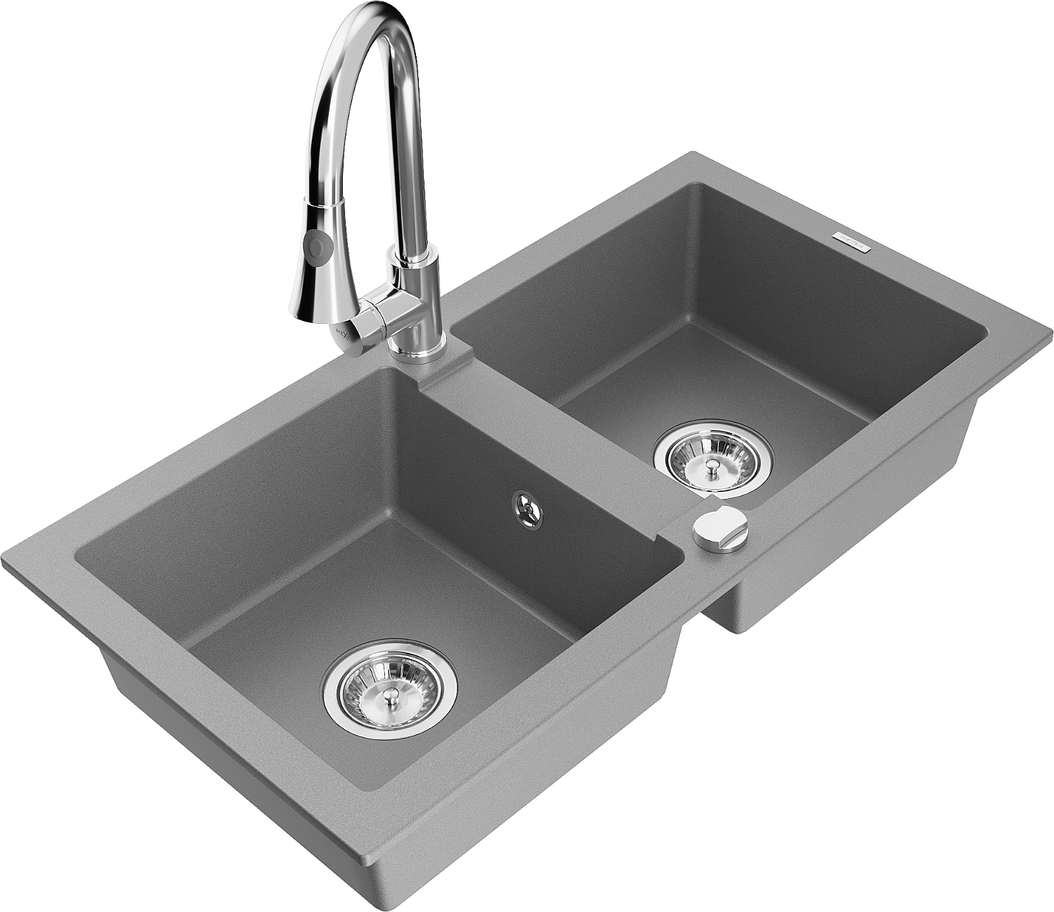 Mexen Mario granitový kuchynský drez dvojkomorový s kuchynskou batériou Elia, sivý - 6504-71-670101-00