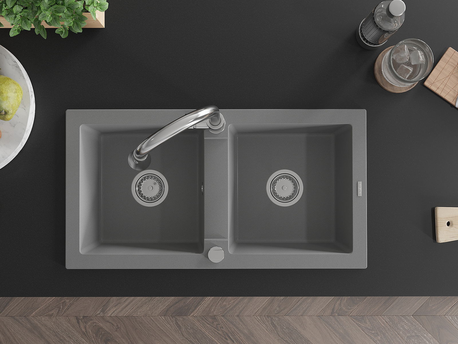 Povrch kuchynského drezu je odolný voči škvrnám a zafarbeniu, vďaka čomu sa ľahko udržiava a zachováva svoju farbu počas dlhého obdobia používania. Estetický a praktický doplnok pre každú kuchyňu.