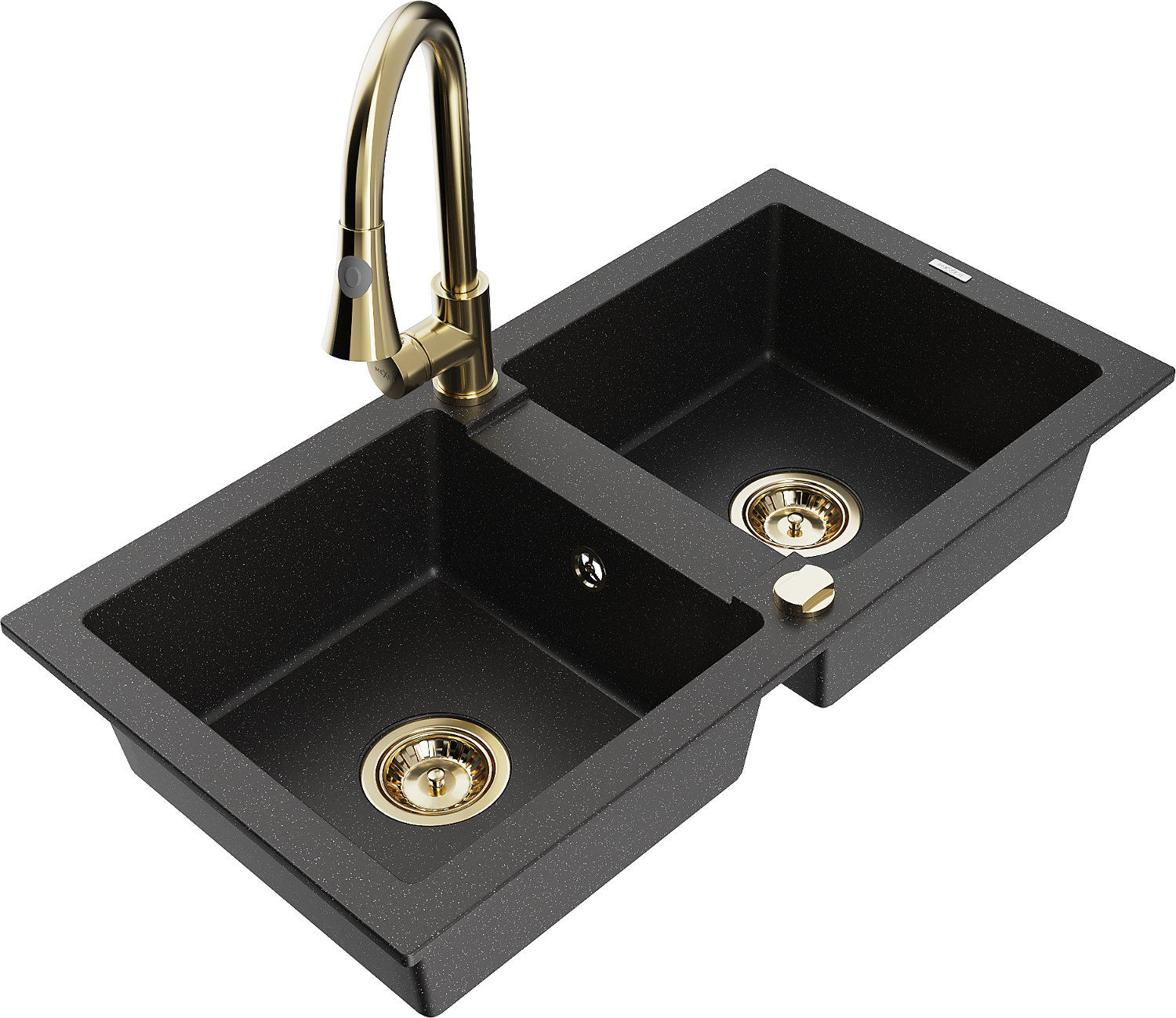 Mexen Mario žulový drez 2-komorový s kuchynskou batériou Elia, čierny/strieborný metalik - 6504-73-670101-50