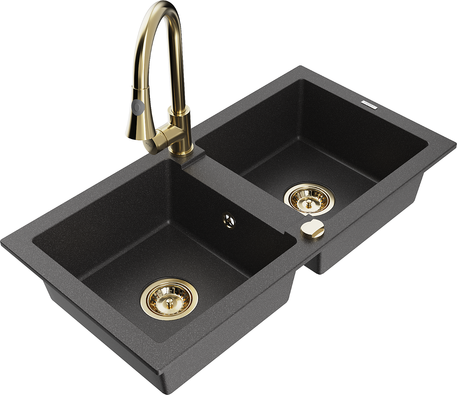 Mexen Mario granitový drez s 2 komorami a kuchynskou batériou Elia, čierny strakatý - 6504-76-670101-50