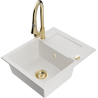 Mexen Enzo granitový kuchynský drez s 1 komorou a odkvapkávačom a kuchynskou batériou Elia, béžový - 6506-69-670101-50
