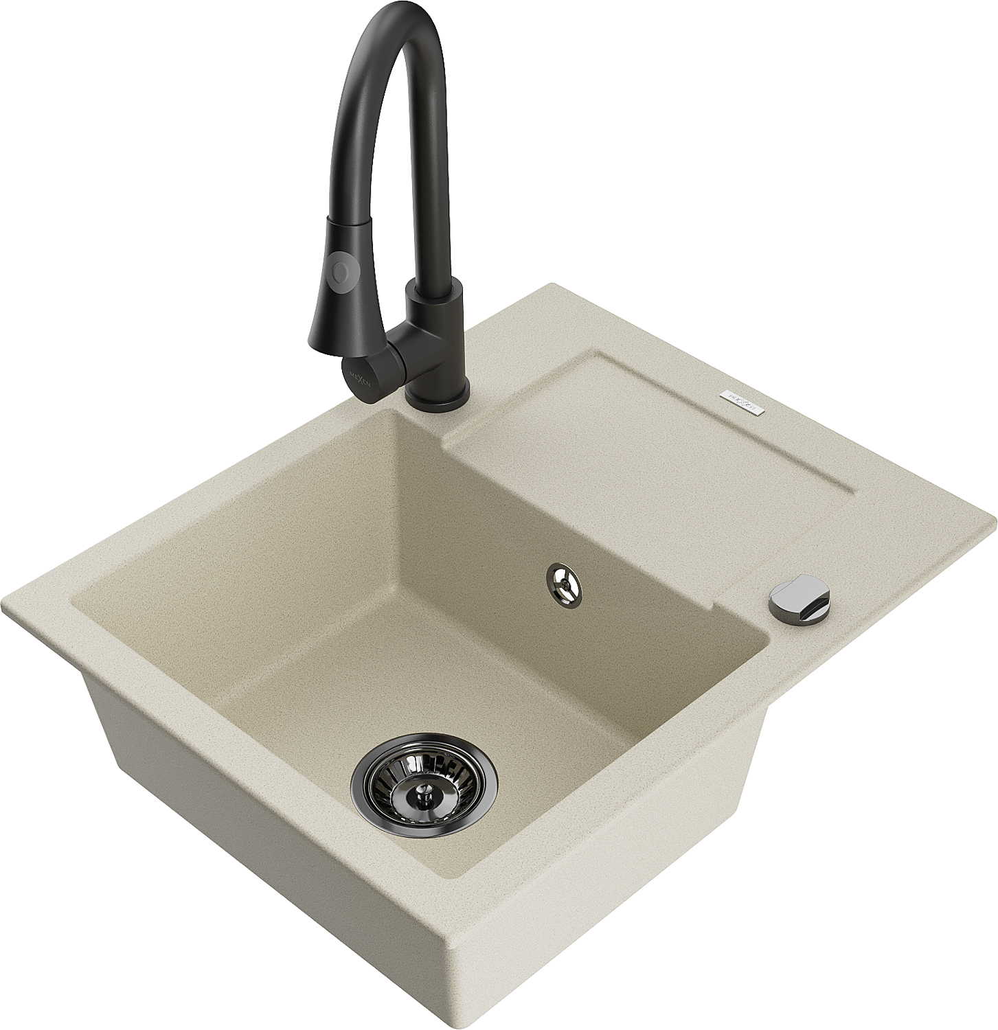 Mexen Enzo jednovaníkový granitový drez s odkvapkávačom a kuchynskou batériou Elia, béžový - 6506-69-670101-70
