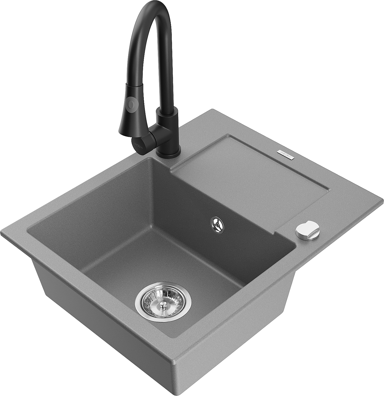 Mexen Enzo granitový drez 1-komorový s odkvapkávačom a kuchynskou batériou Elia, sivý - 6506-71-670101-70