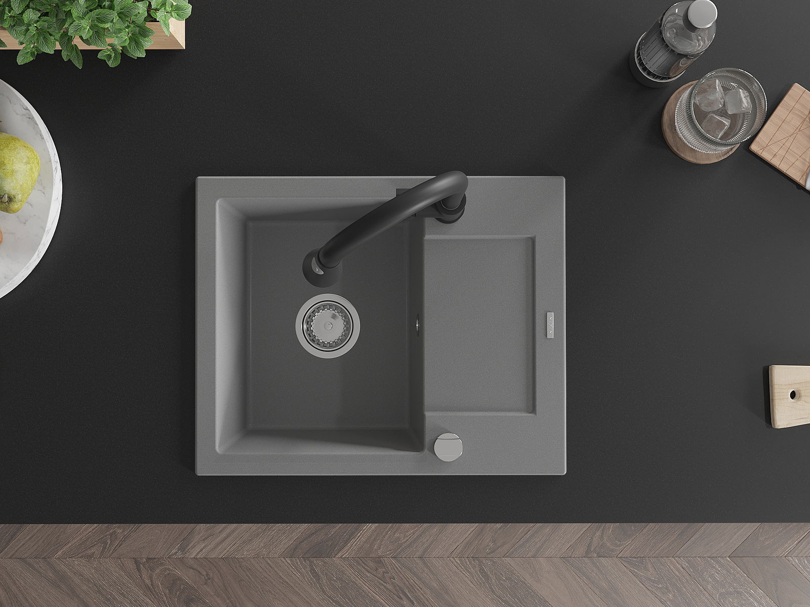 Povrch kuchynského drezu je odolný voči škvrnám a zafarbeniu, vďaka čomu sa ľahko udržiava a zachováva svoju farbu počas dlhého obdobia používania. Estetický a praktický doplnok pre každú kuchyňu.