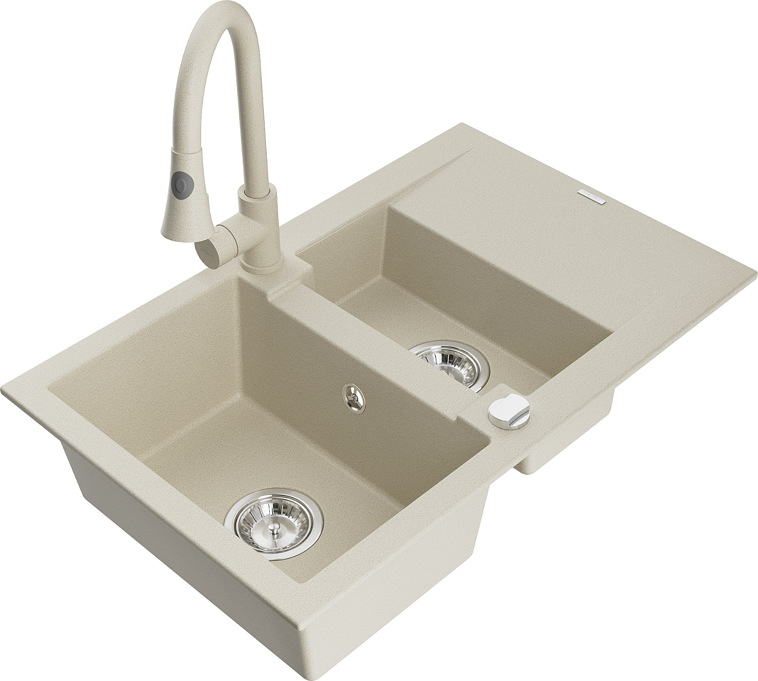 Mexen Gaspar žulový drez 1,5-komorový s odkvapkávačom a kuchynskou batériou Elia, béžový - 6507-69-670101-69