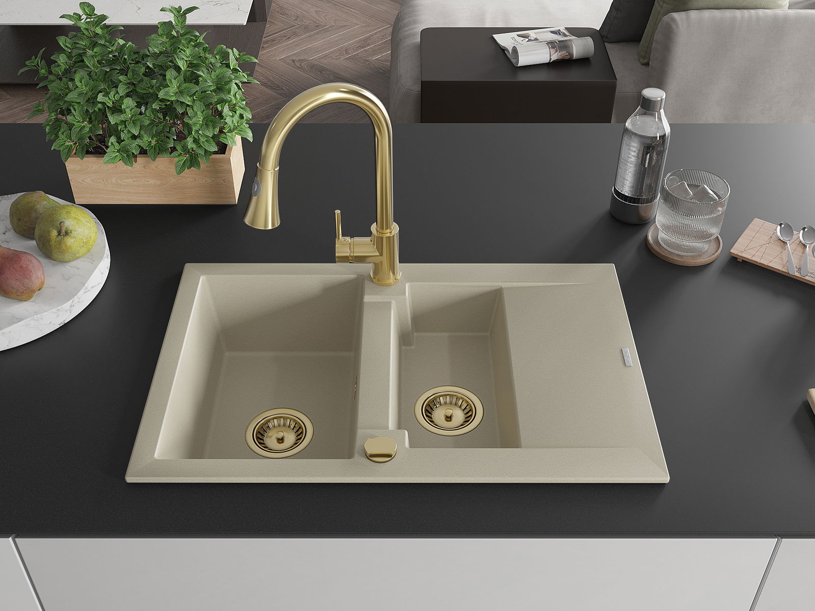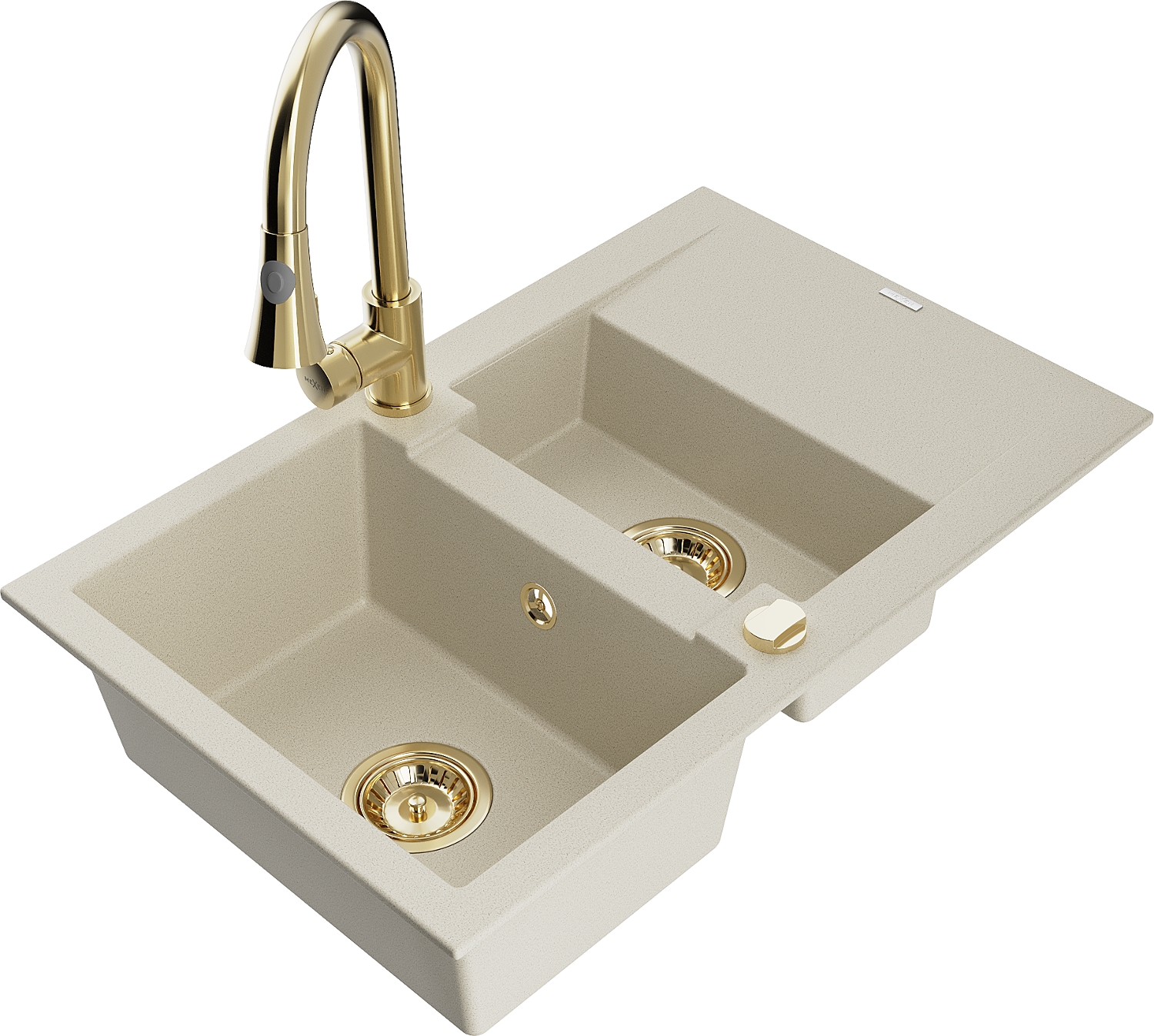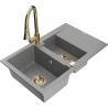 Mexen Gaspar žulový drez 1,5-komorový s odkvapkávačom a kuchynskou batériou Elia, béžový - 6507-69-670101-50