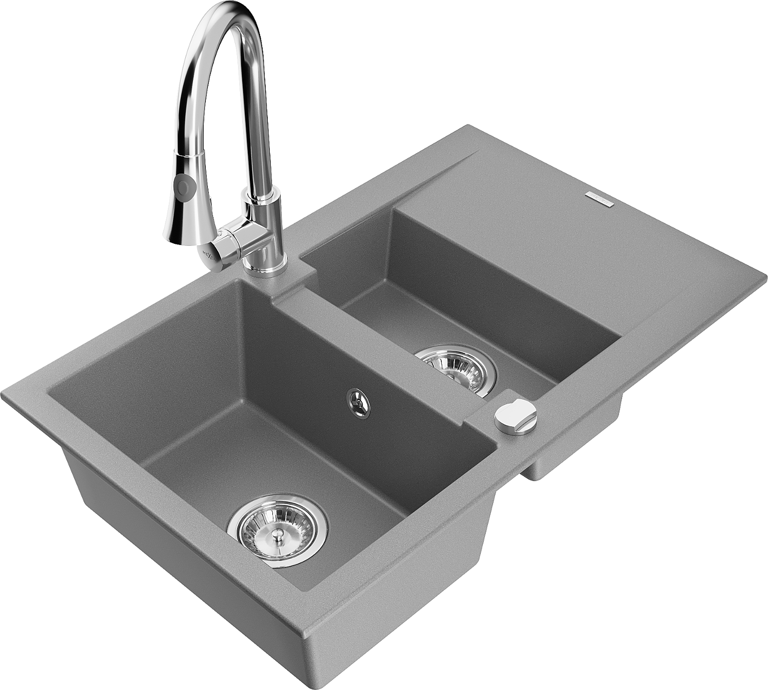 Mexen Gaspar granitový drez 1,5-komorový s odkvapkávačom a kuchynskou batériou Elia, sivý - 6507-71-670101-00