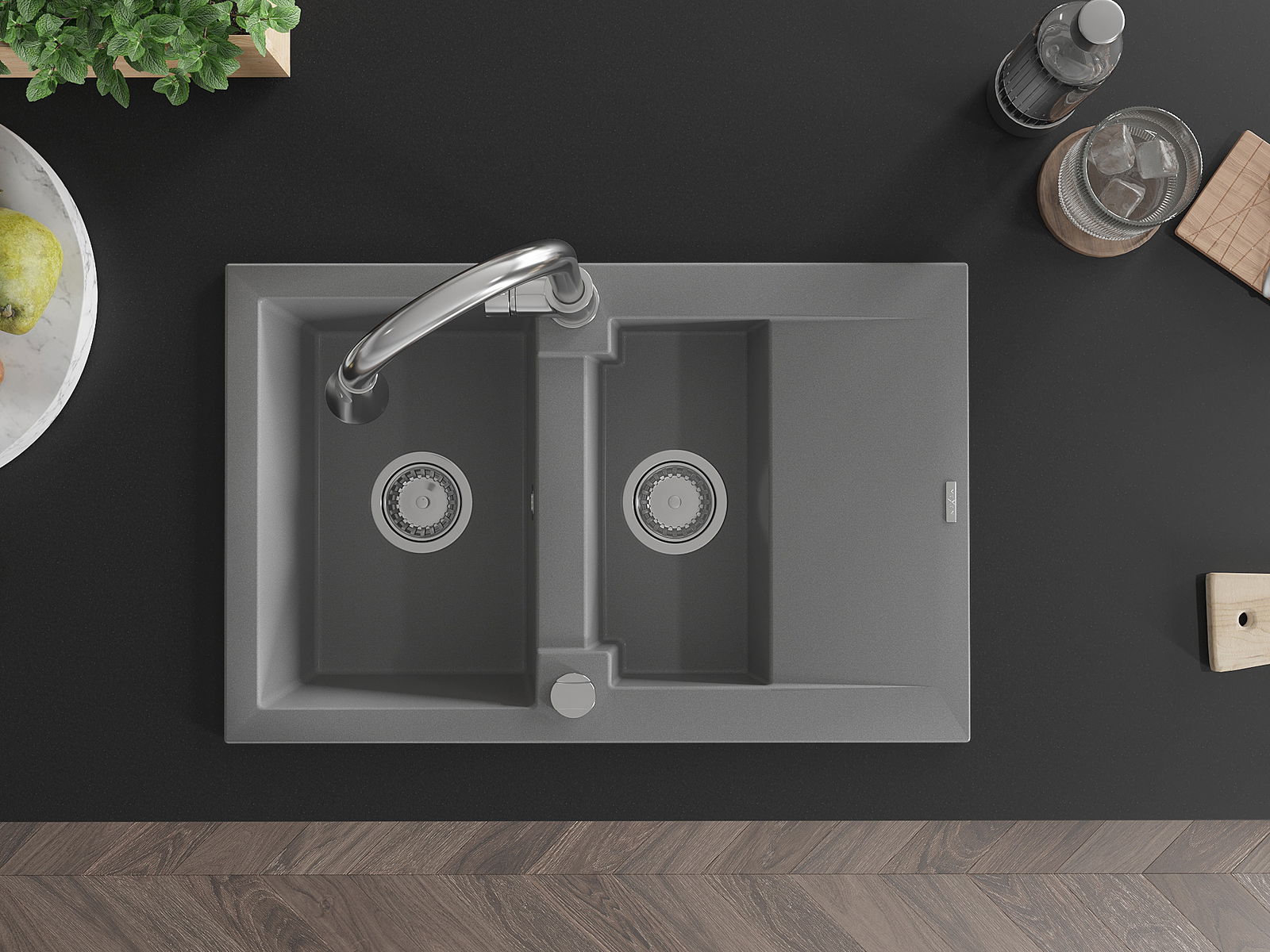 Povrch umývadla je odolný voči škvrnám a sfarbeniu, vďaka čomu sa ľahko čistí a zachováva si svoju farbu po dlhú dobu. Estetický a prakticky dopĺňajúci každú kuchyňu.