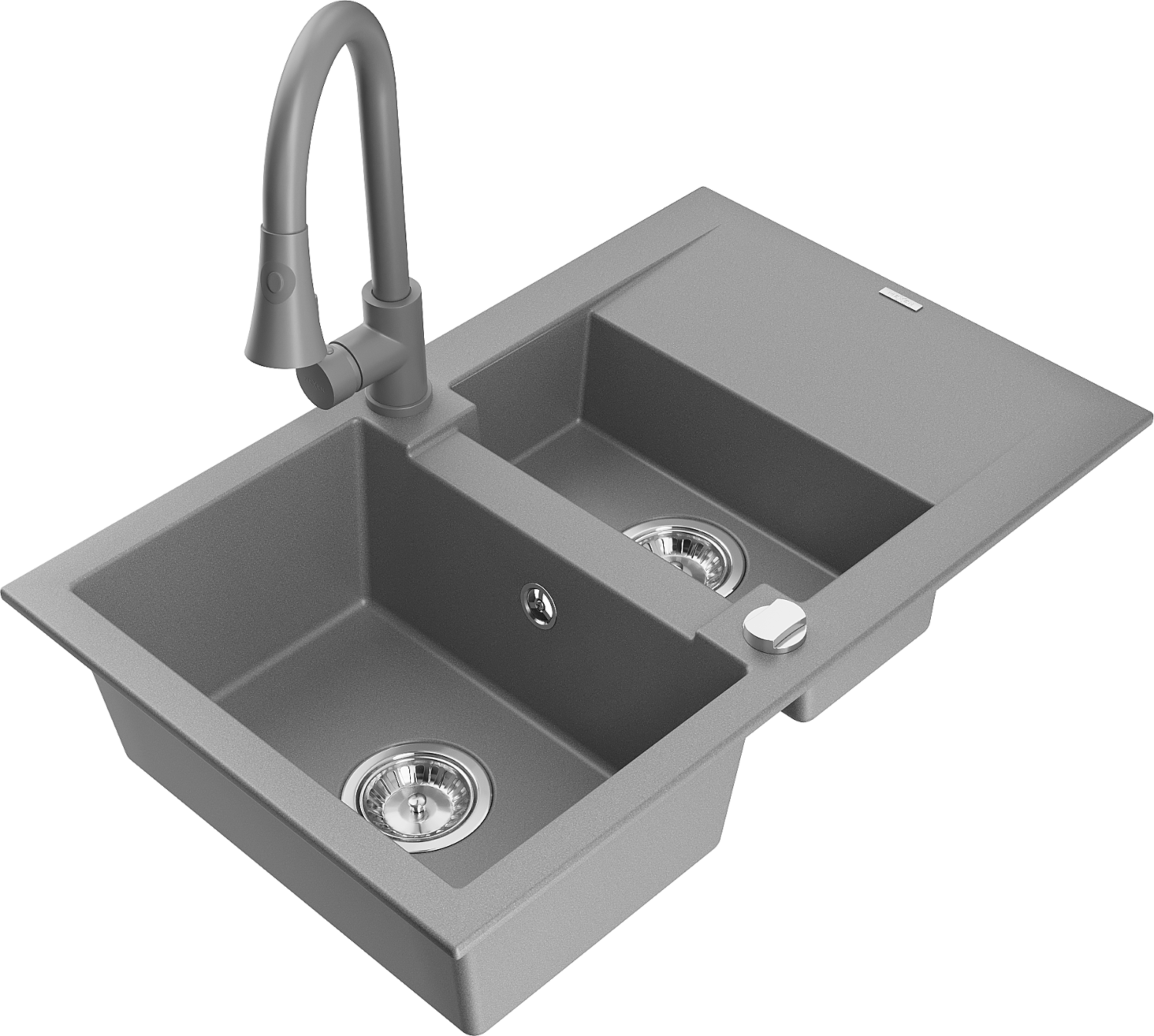 Mexen Gaspar granitový drez 1,5-komorový s odkvapkávačom a kuchynskou batériou Elia, sivý - 6507-71-670101-71