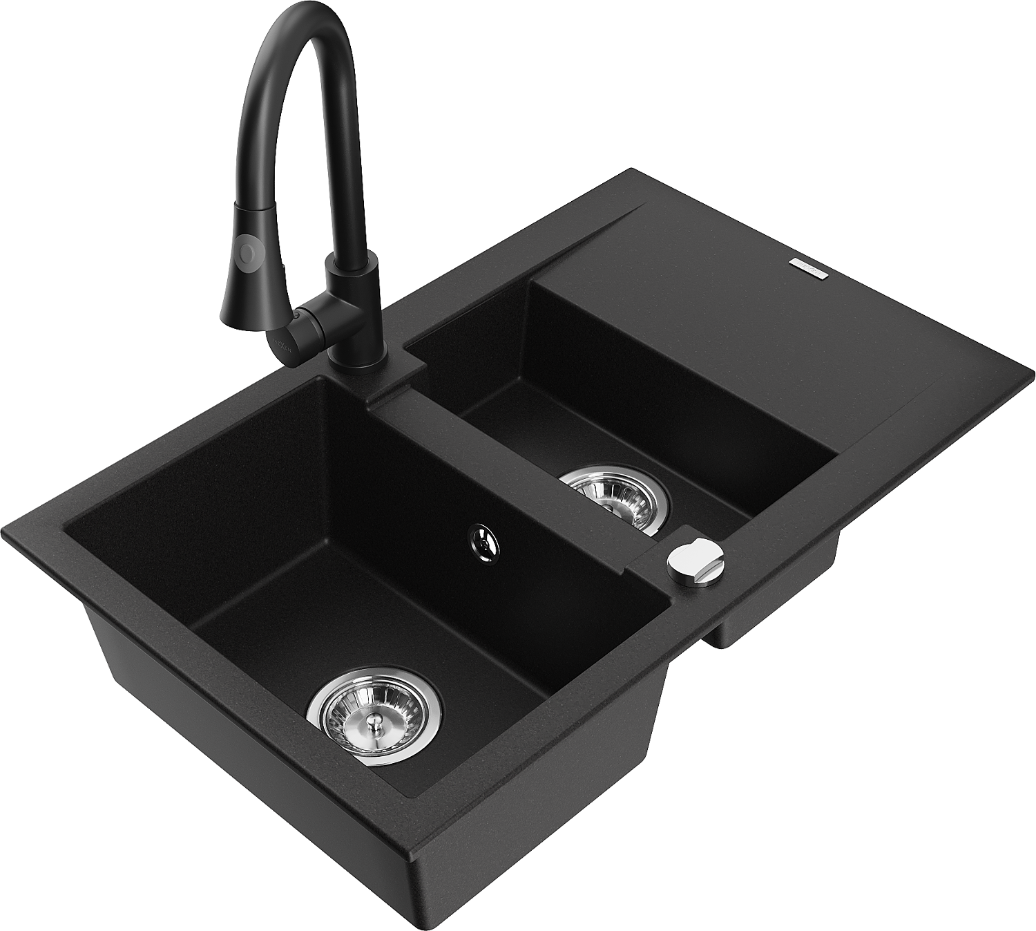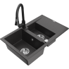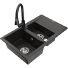 Mexen Gaspar granitový drez 1,5-komorový s odkvapkávačom a kuchynskou batériou Elia, čierny - 6507-77-670101-70
