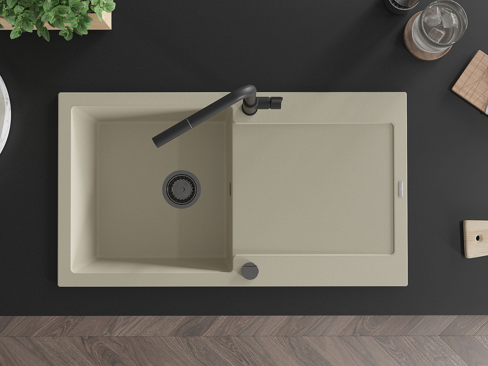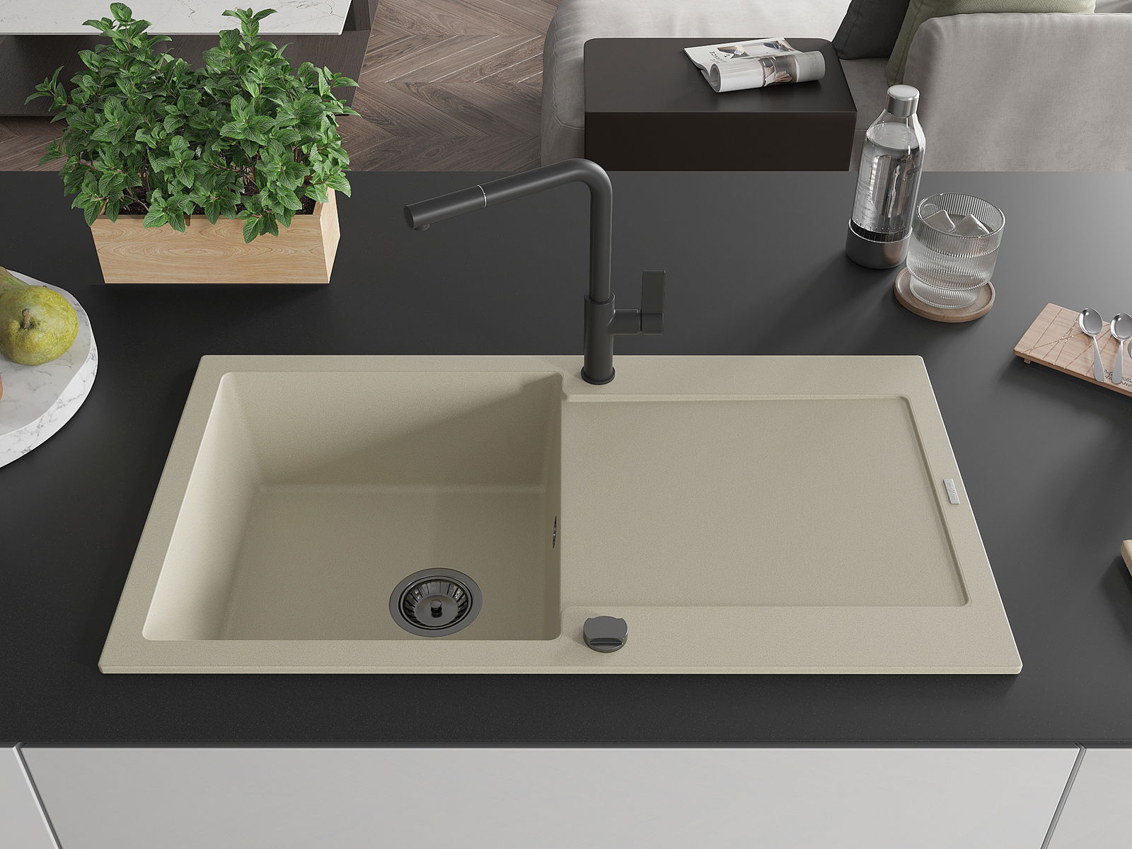 Povrch umývadla je odolný voči škvrnám a sfarbeniu, vďaka čomu sa ľahko čistí a zachováva si svoju farbu po dlhú dobu. Estetický a prakticky dopĺňajúci každú kuchyňu.