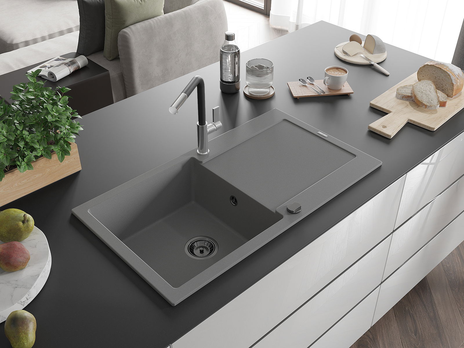 Drez bol vyrobený z vysoko kvalitného granitu. Predstavuje elegantný a predovšetkým praktický doplnok každej kuchyne, nezávisle od jej štýlu. Vysoká kvalita a trvácnosť granitu zaručujú mnohoročné používanie.