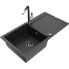 Mexen Leo žulový kuchynský drez 1-komorový s odkvapkávačom a kuchynskou batériou Flora, sivý - 6501-71-670401-07-B