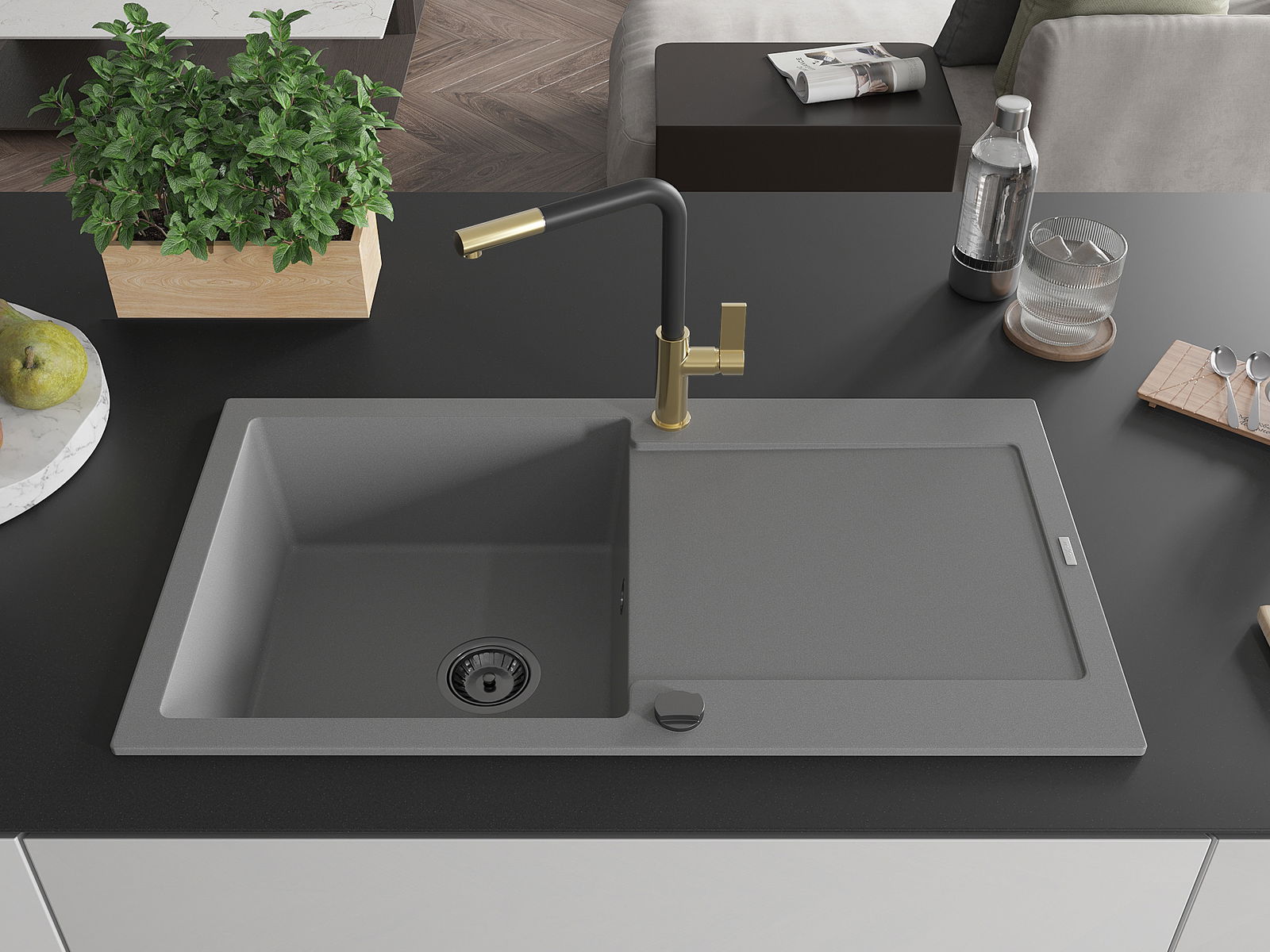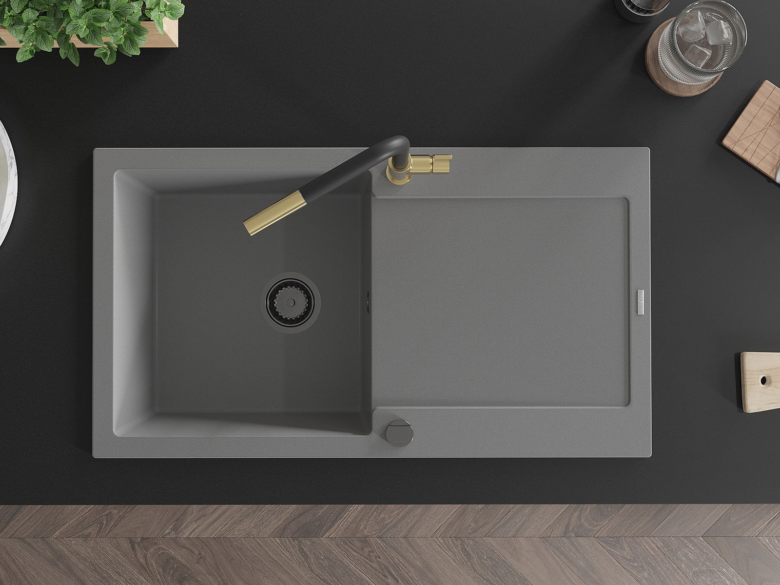 Povrch umývadla je odolný voči škvrnám a sfarbeniu, vďaka čomu sa ľahko čistí a zachováva si svoju farbu po dlhú dobu. Estetický a prakticky dopĺňajúci každú kuchyňu.