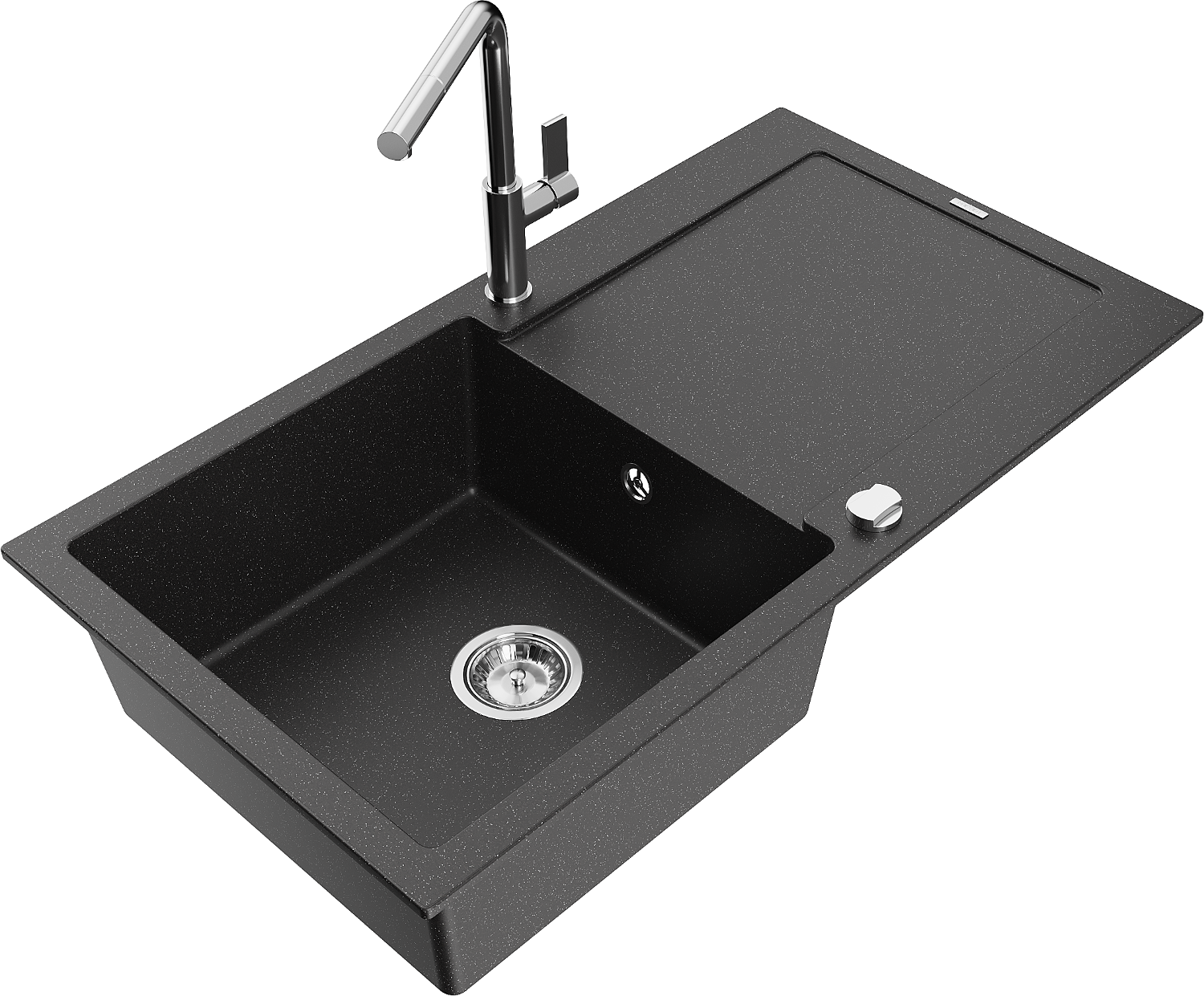 Mexen Leo 1-komorový granitový drez s odkvapkávačom a kuchynskou batériou Flora, čierny/strieborný metalický - 6501-73-670401-0?