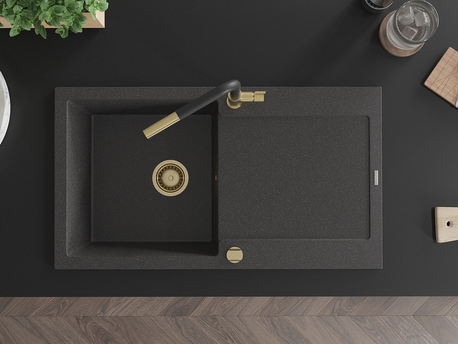 Povrch umývadla je odolný voči škvrnám a sfarbeniu, vďaka čomu sa ľahko čistí a zachováva si svoju farbu po dlhú dobu. Estetický a prakticky dopĺňajúci každú kuchyňu.