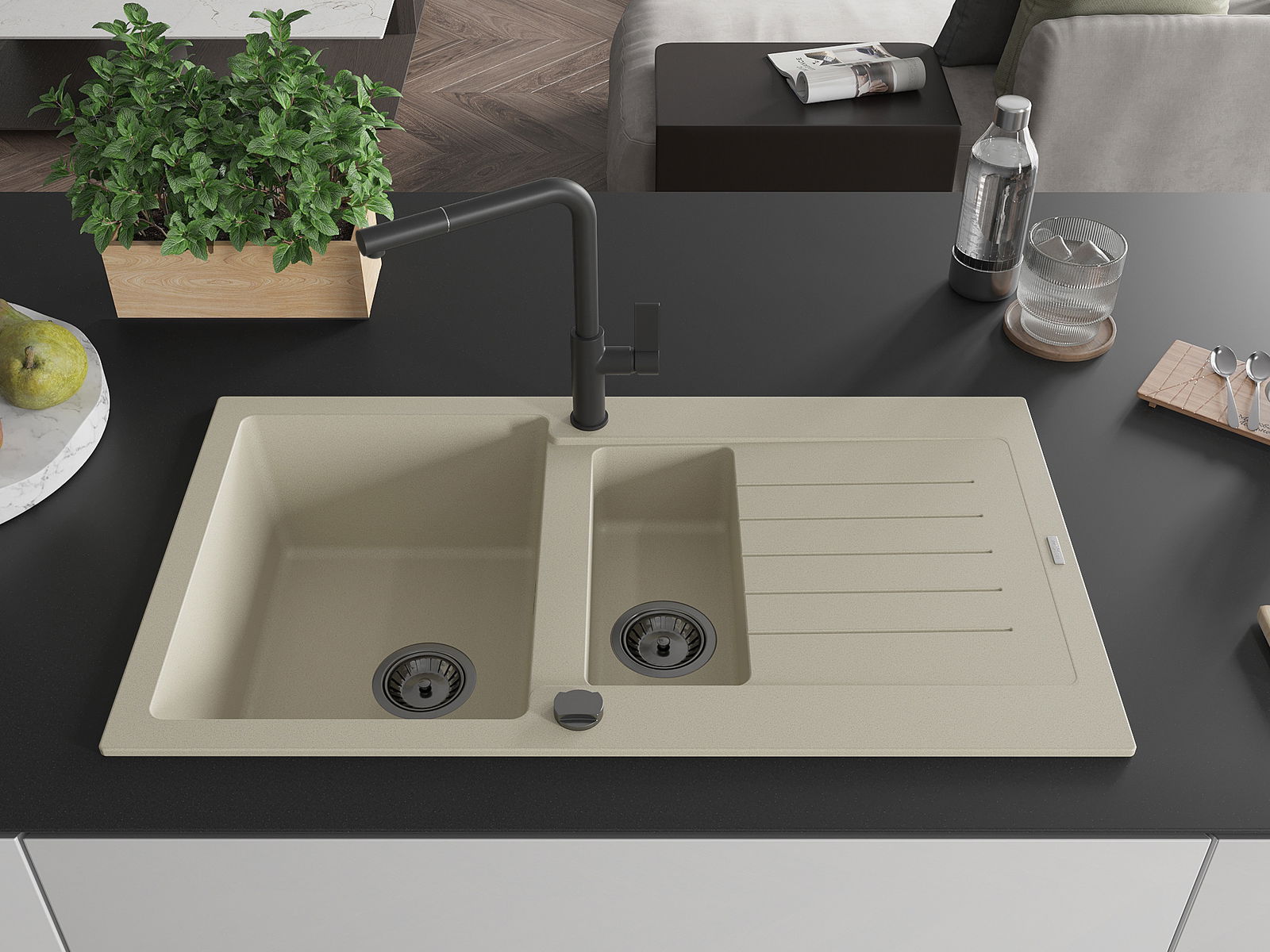 Povrch umývadla je odolný voči škvrnám a sfarbeniu, vďaka čomu sa ľahko čistí a zachováva si svoju farbu po dlhú dobu. Estetický a prakticky dopĺňajúci každú kuchyňu.