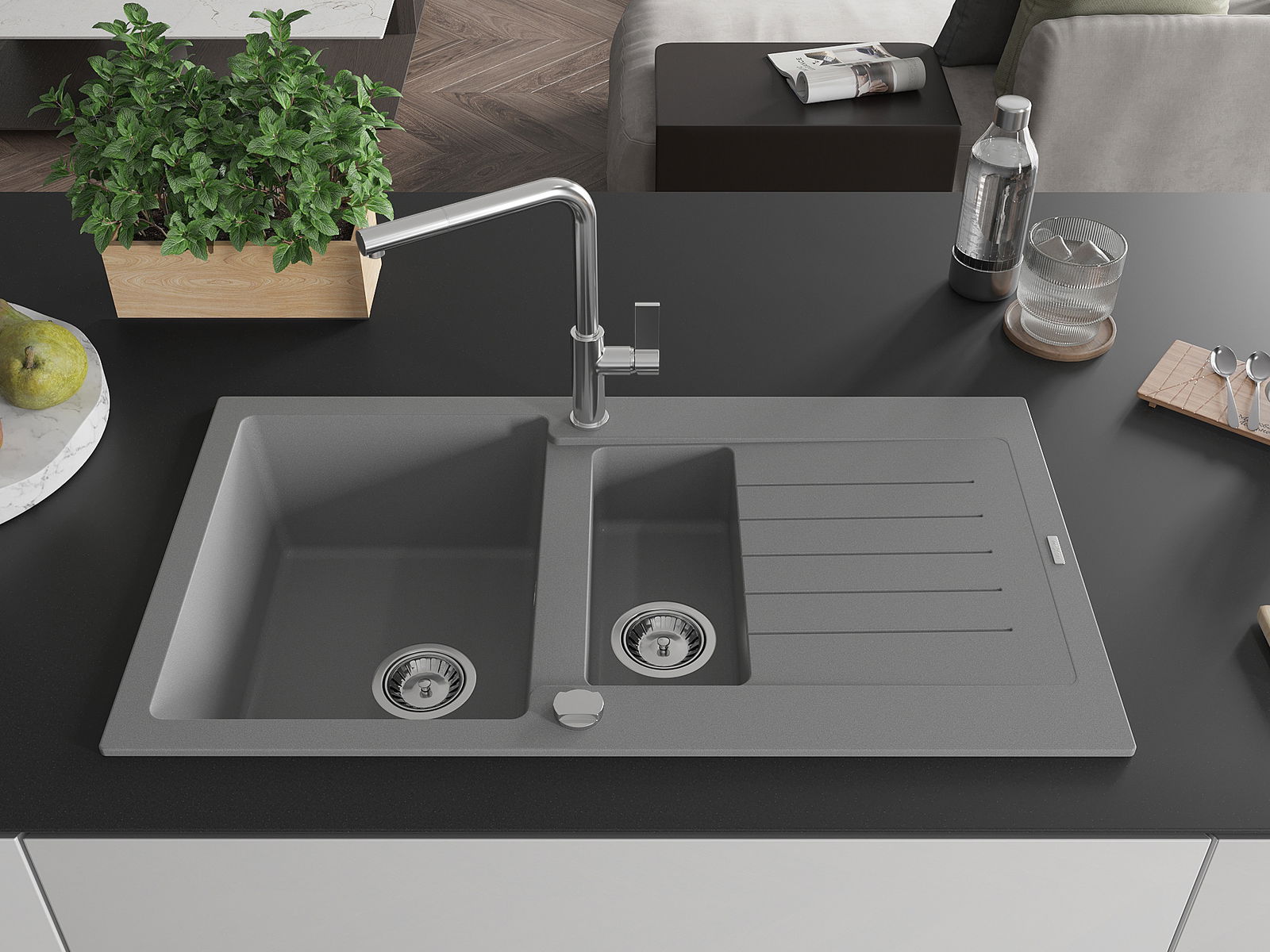 Povrch umývadla je odolný voči škvrnám a sfarbeniu, vďaka čomu sa ľahko čistí a zachováva si svoju farbu po dlhú dobu. Estetický a prakticky dopĺňajúci každú kuchyňu.