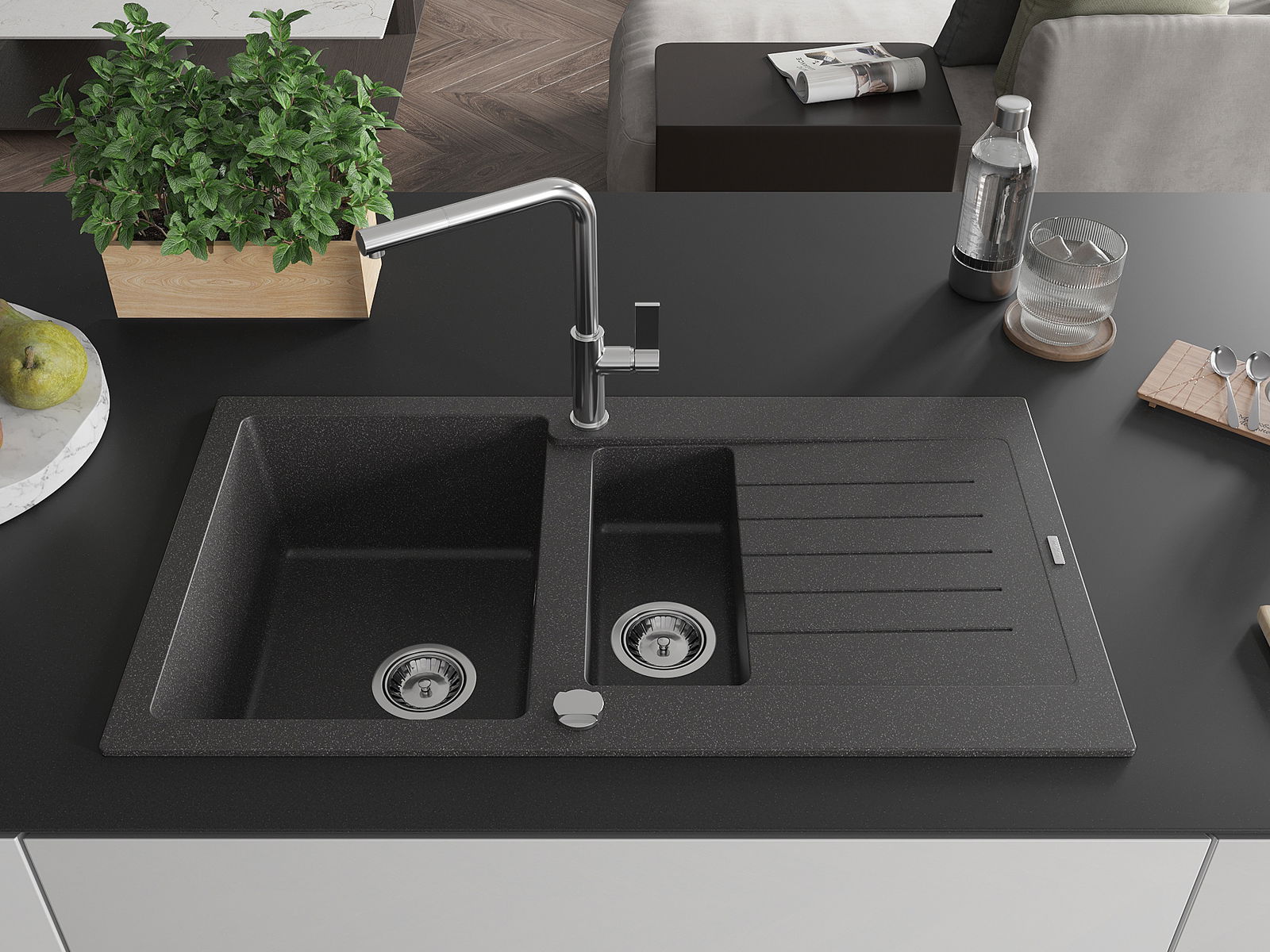 Drez bol vyrobený z vysoko kvalitného granitu. Predstavuje elegantné, ale predovšetkým praktické doplnenie každej kuchyne, nezávisle od jej štýlu. Vysoká kvalita a trvácnosť granitu zaisťujú dlhodobé používanie.