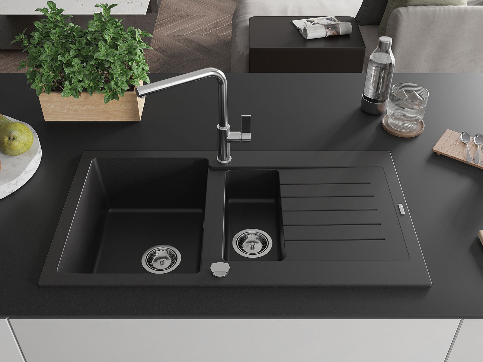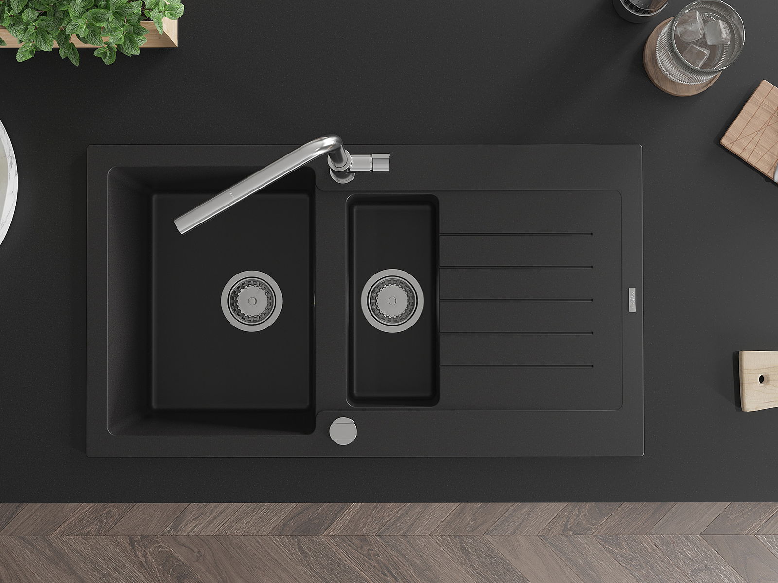 Povrch umývadla je odolný voči škvrnám a sfarbeniu, vďaka čomu sa ľahko čistí a zachováva si svoju farbu po dlhú dobu. Estetický a prakticky dopĺňajúci každú kuchyňu.