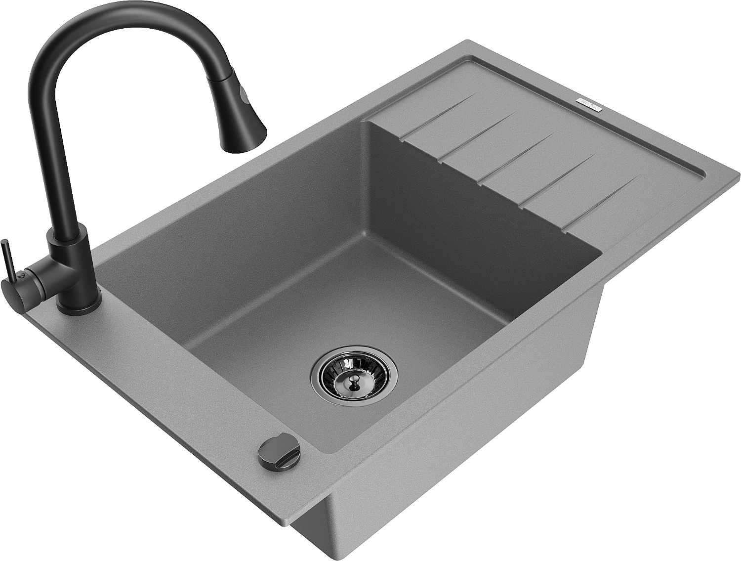 Mexen Elias žulový drez 1-komorový s odkvapkávačom a kuchynskou batériou Elia, sivý - 6511-71-670101-70-B