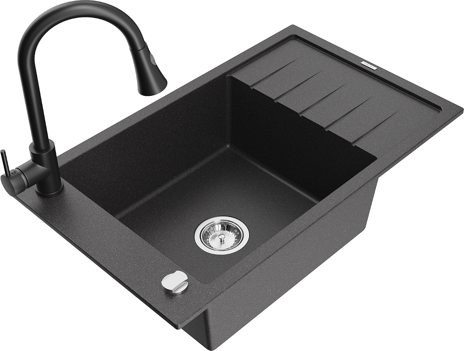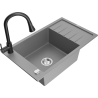 Mexen Elias žulový drez 1-komorový s odkvapkávačom a kuchynskou batériou Elia, čierny s bodkami - 6511-76-670101-70
