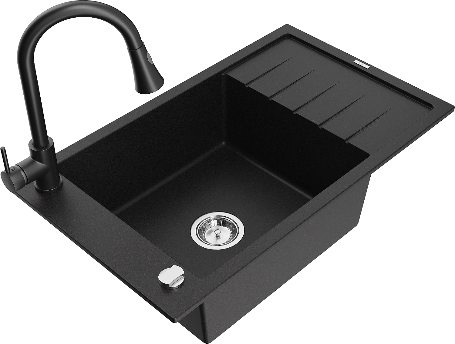 Mexen Elias žulový drevozmyvák 1-komorový s odkvapkávačom a kuchynskou batériou Elia, čierny - 6511-77-670101-70