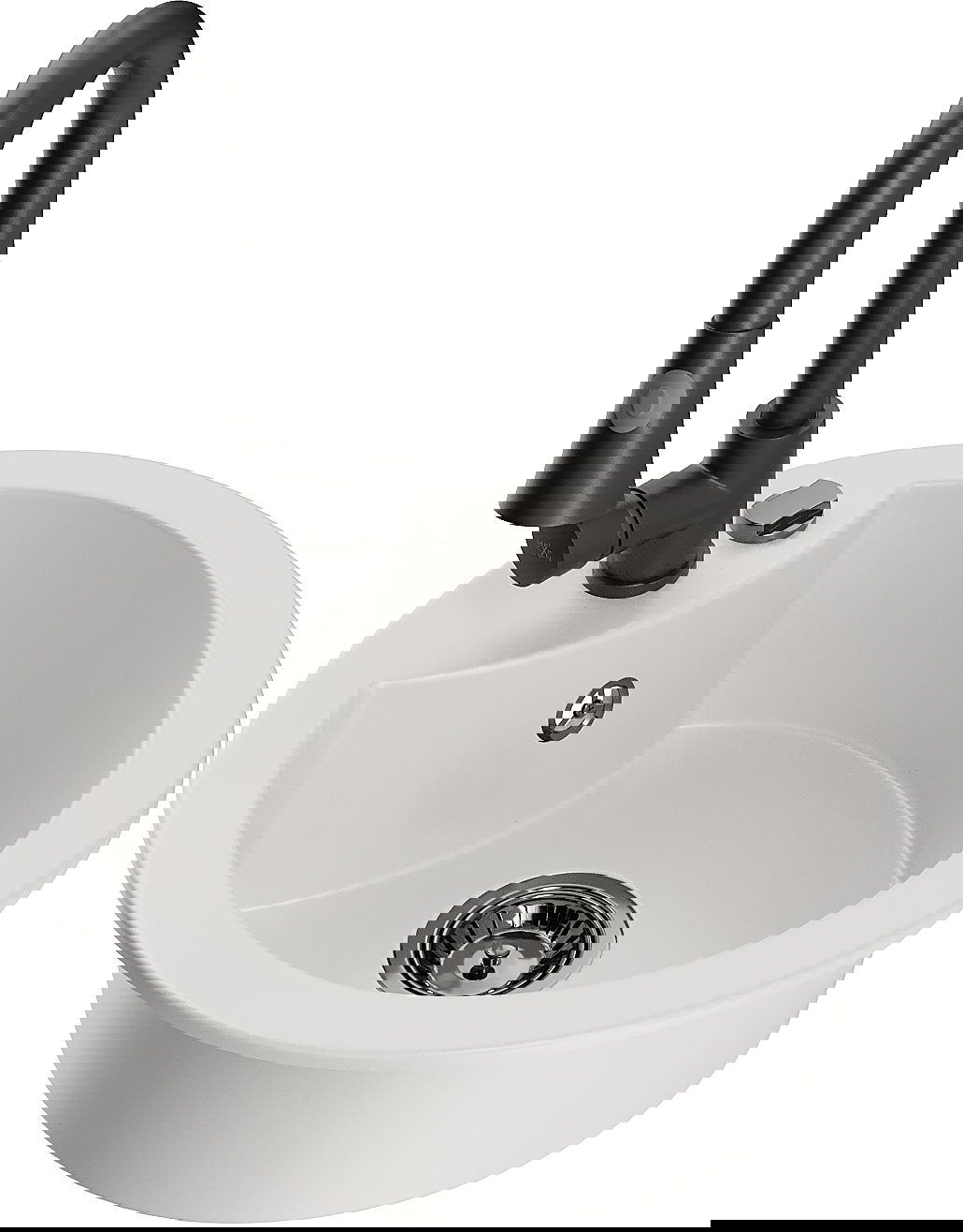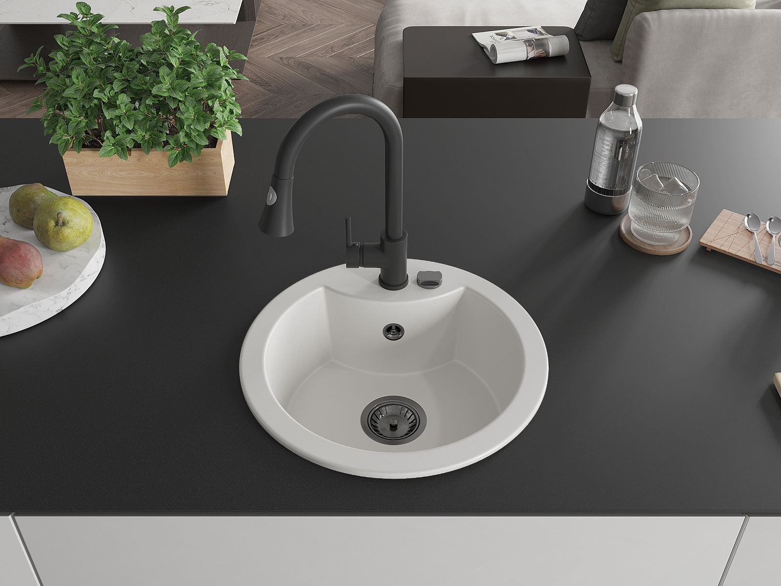 Mexen Diego granitový drez 1-komorový s kuchynskou batériou Elia, biely - 6512-20-670101-70