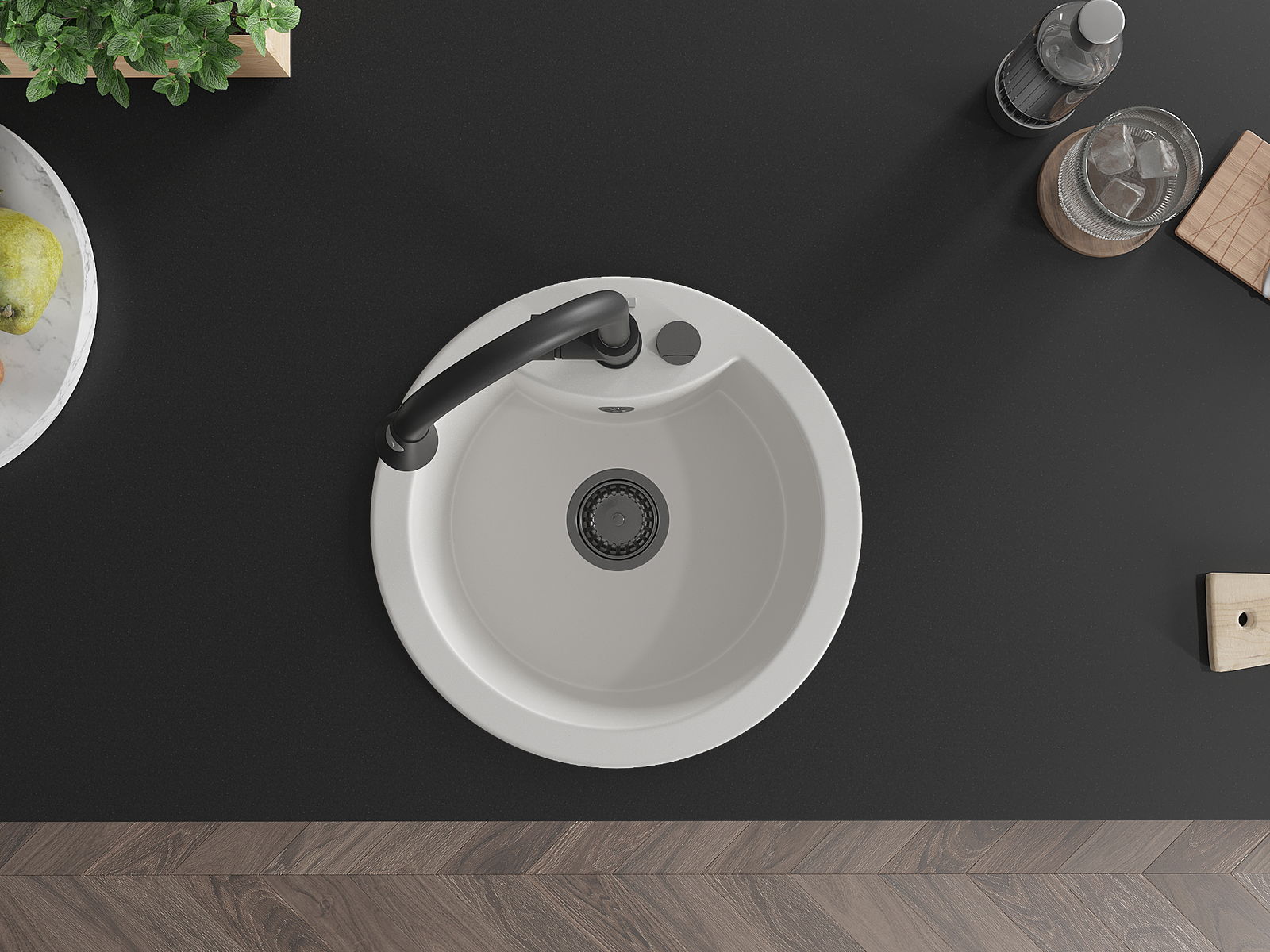 Povrch kuchynského drezu je odolný voči škvrnám a zafarbeniu, vďaka čomu sa ľahko udržiava a zachováva svoju farbu počas dlhého obdobia používania. Estetický a praktický doplnok pre každú kuchyňu.